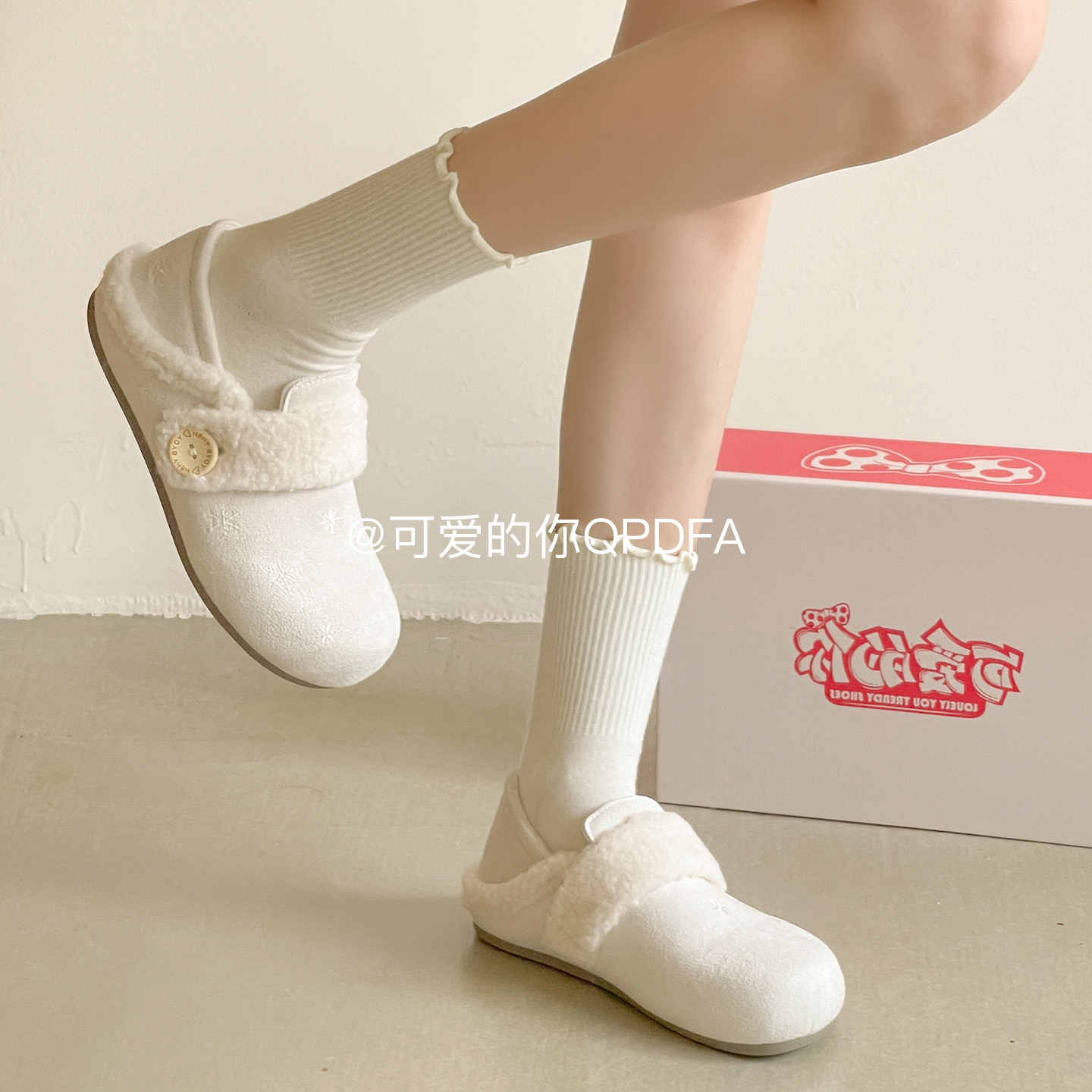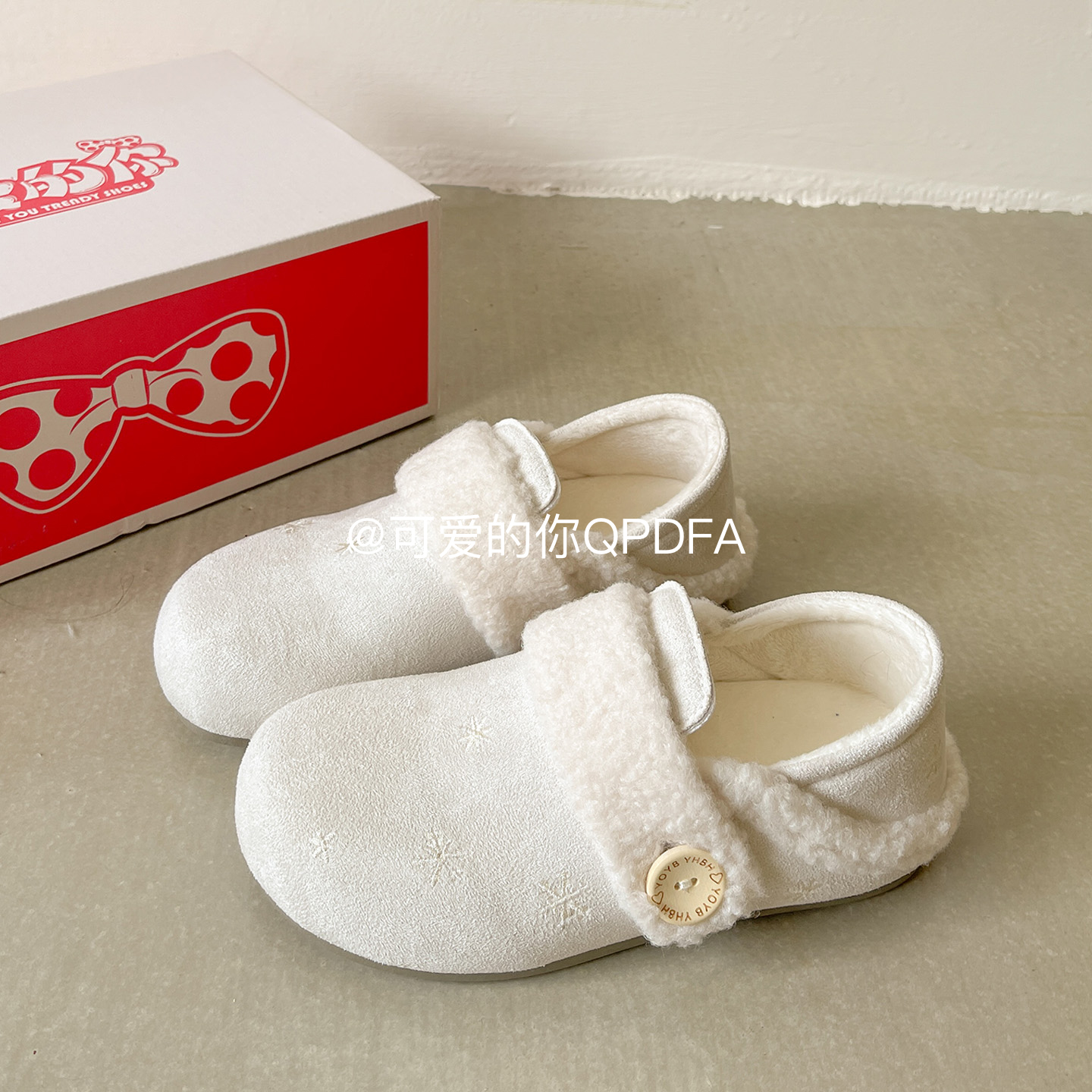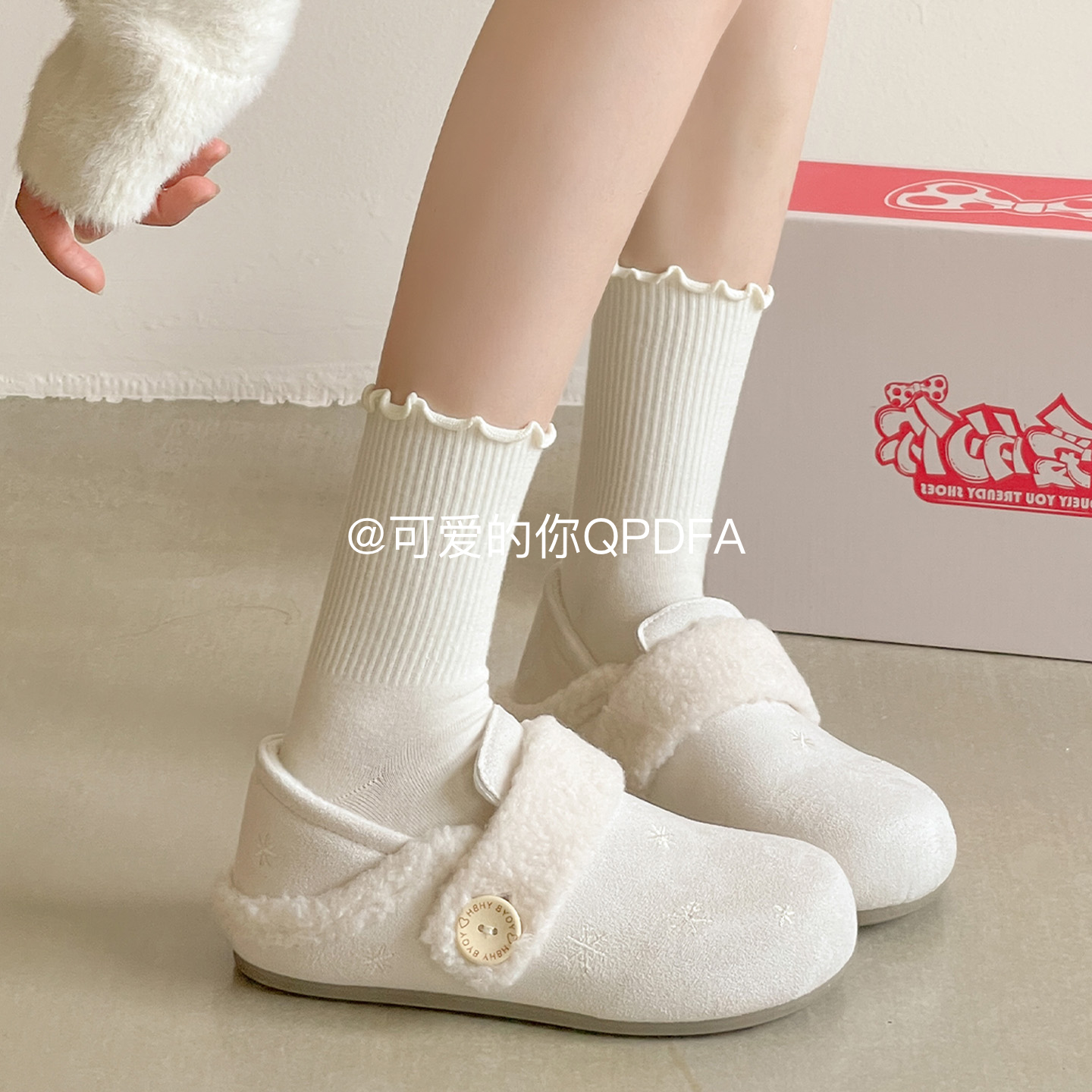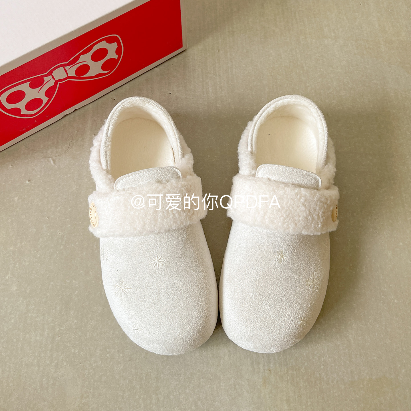 可爱的你魔术贴一脚蹬加绒勃肯鞋全包女2025新款冬季毛毛二棉鞋子