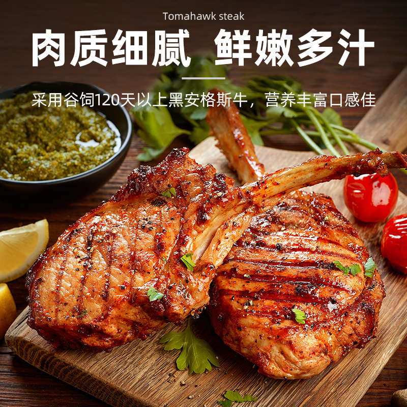 澳洲谷饲战斧牛排原切进口安格斯厚切新鲜雪花牛肉带骨眼肉牛扒