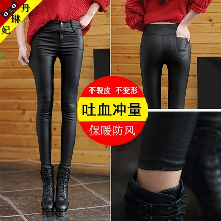 皮裤长裤加绒加厚小脚裤秋冬涂层