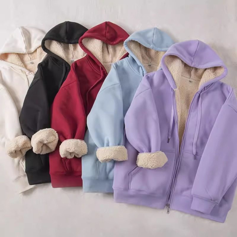 加绒加厚女款卫衣拉链开衫外套冬季2024年新款羊羔绒保暖秋冬爆款