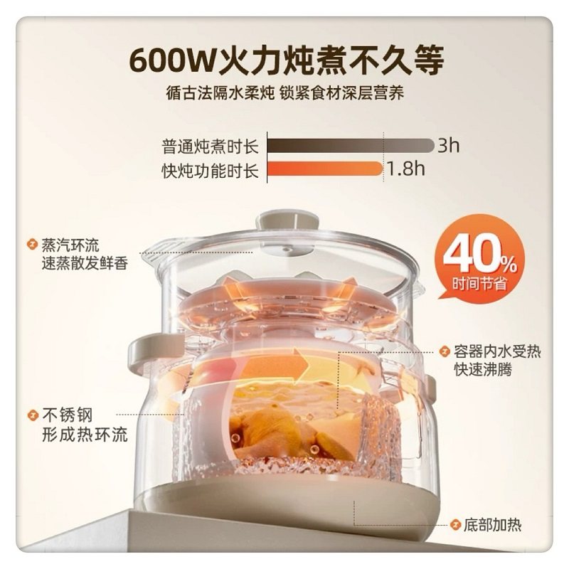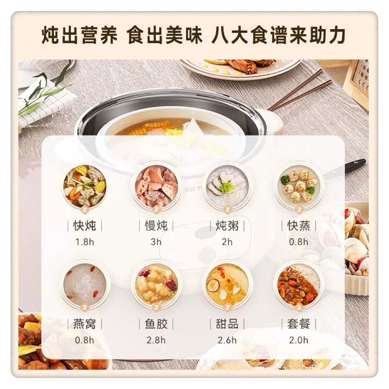 天际隔水炖锅1-4人 不锈钢全自动煮粥煲汤银耳燕窝盅2.2L蒸炖同步