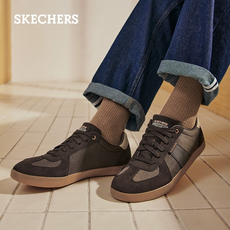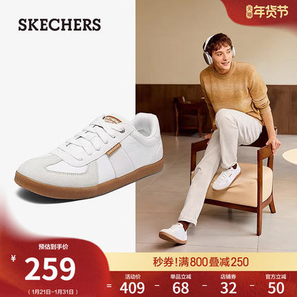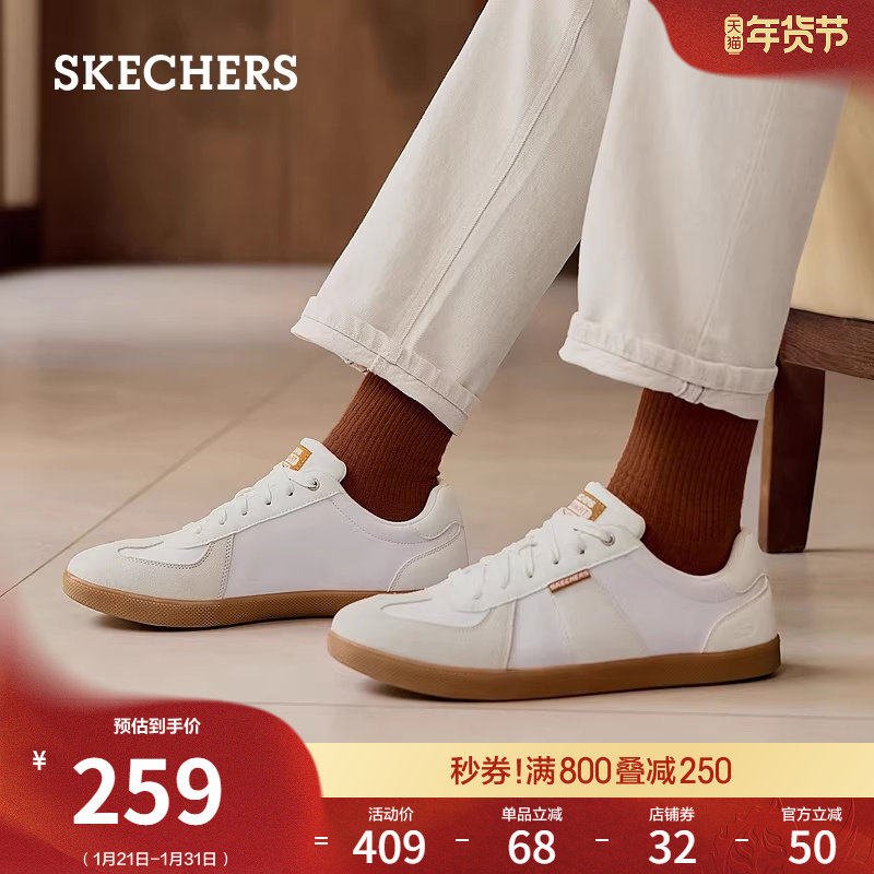 斯凯奇春季男鞋经典皮革休闲鞋时尚百搭平底板鞋舒适德训鞋运动鞋