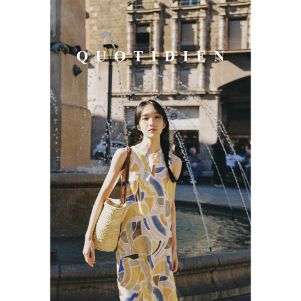 QUOTIDIEN|马略卡假日|巴塞罗那设计师合作印花真丝露背连衣裙