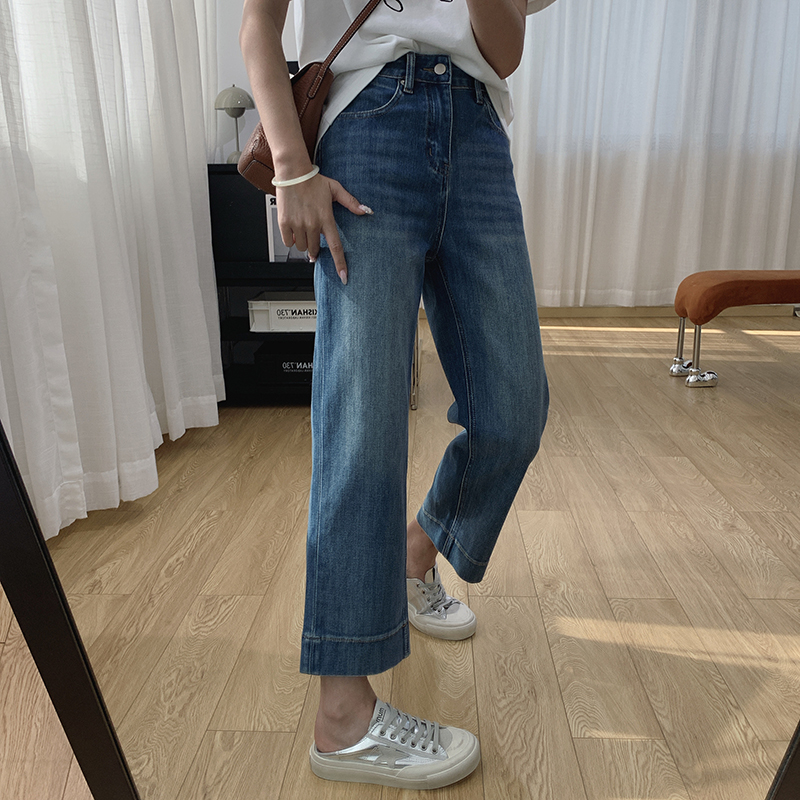 四面弹高腰显瘦宽松直筒牛仔裤女秋季九分裤窄版阔腿裤春秋裤子