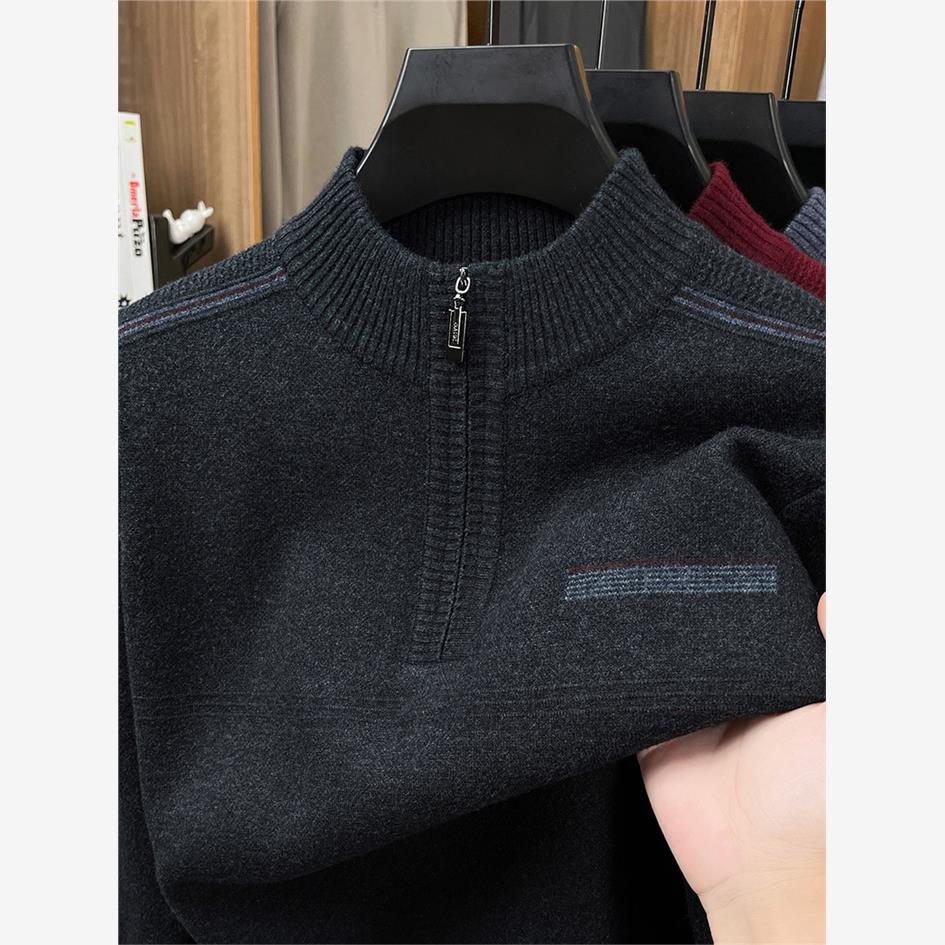 保罗中年爸爸本命年红色半高领拉链羊毛衫男士加厚保暖打底毛衣
