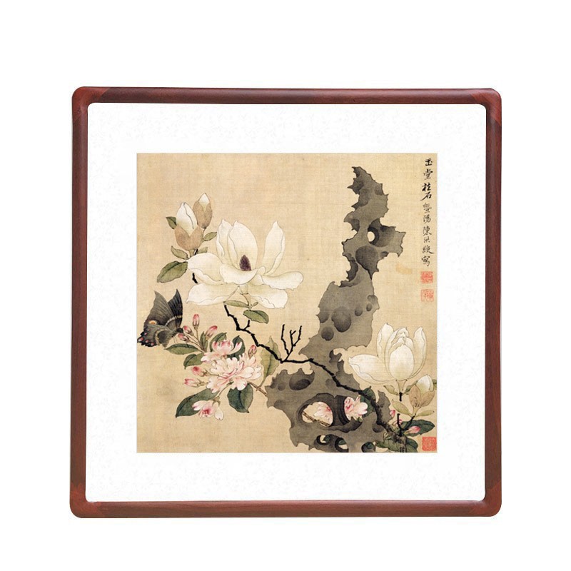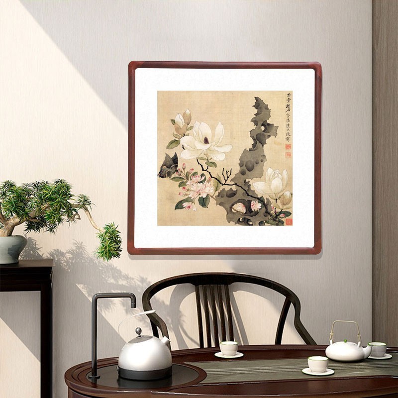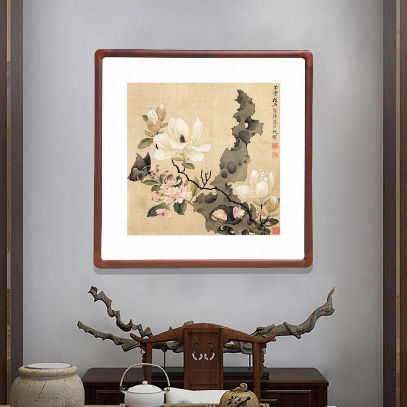 国画斗方花鸟画h新中式客厅玄关装饰画办公室挂画陈洪绶玉堂柱石