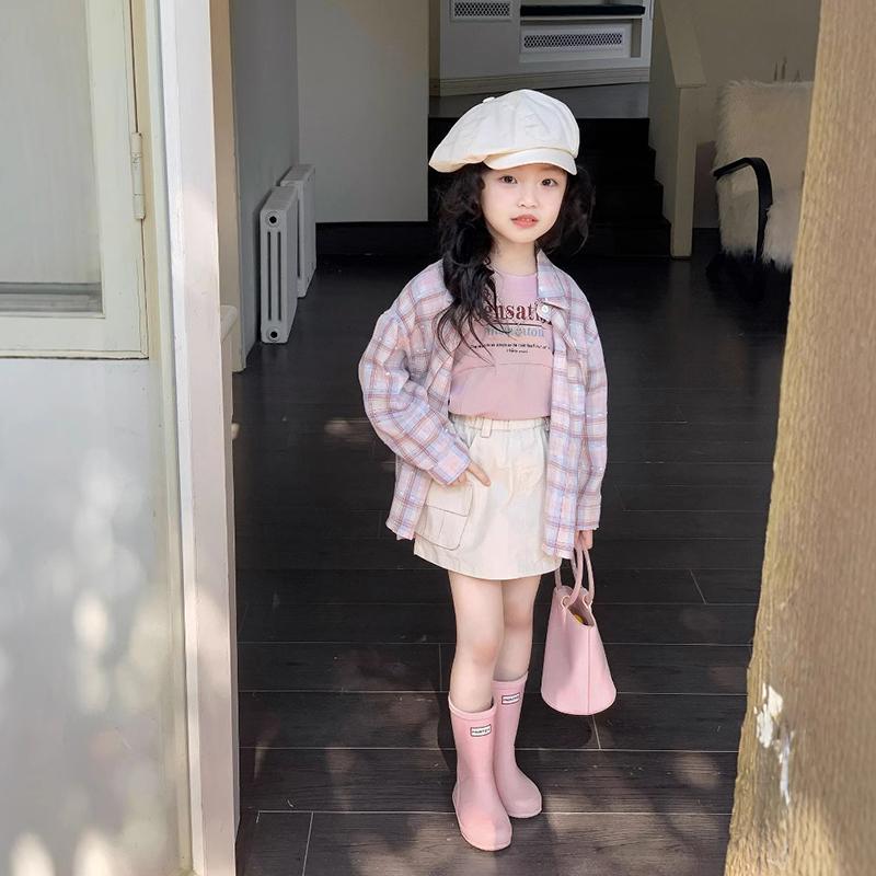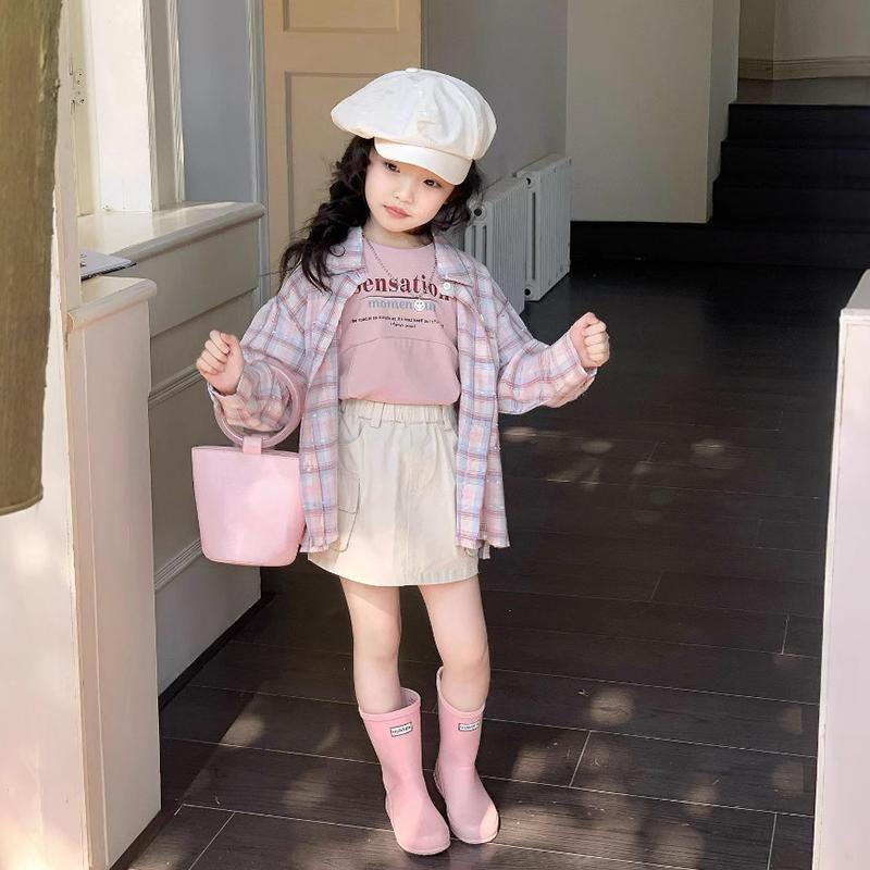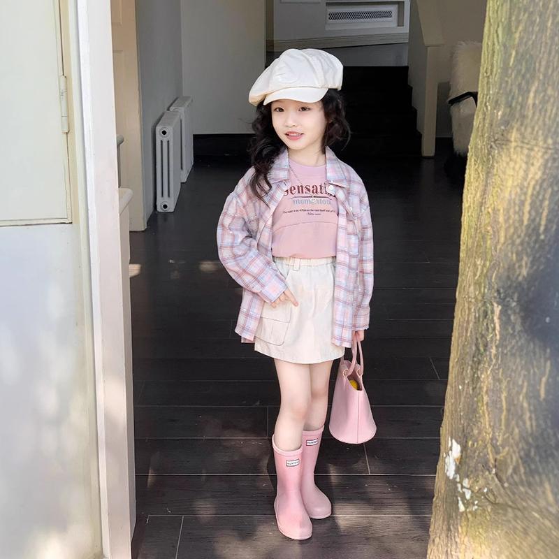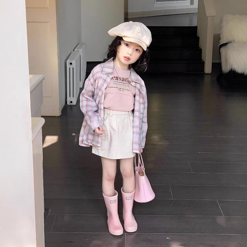 女童格子衬衫秋装新款儿童宽松上衣长袖衬衣洋气百搭背心工装裙裤