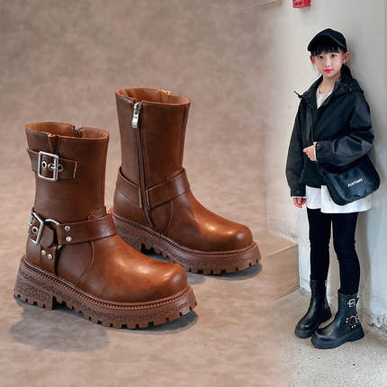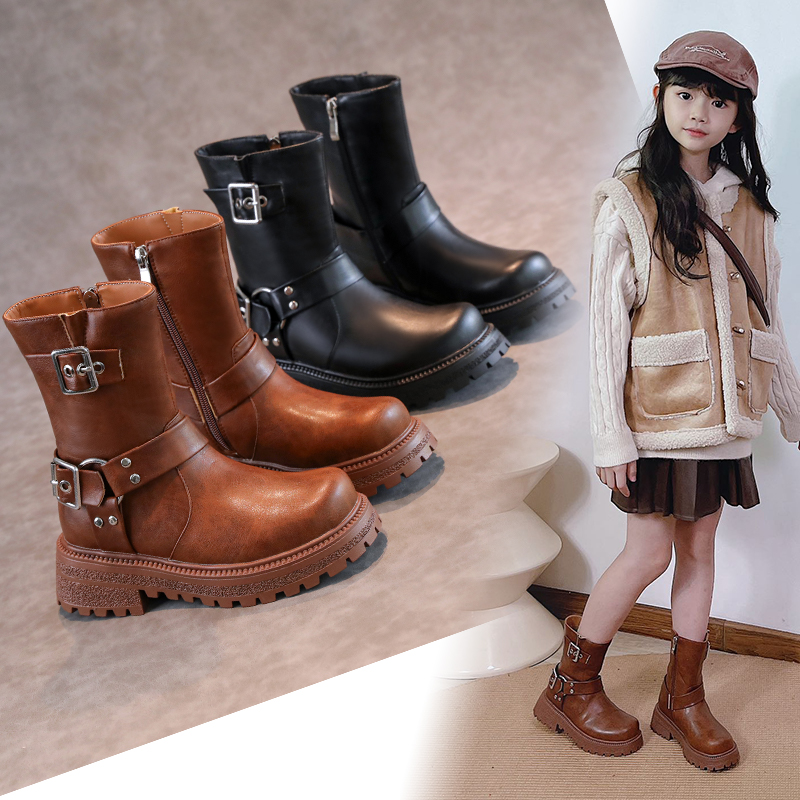 儿童马丁靴2025秋冬新款女童靴子皮鞋加绒二棉大童短靴美拉德靴子