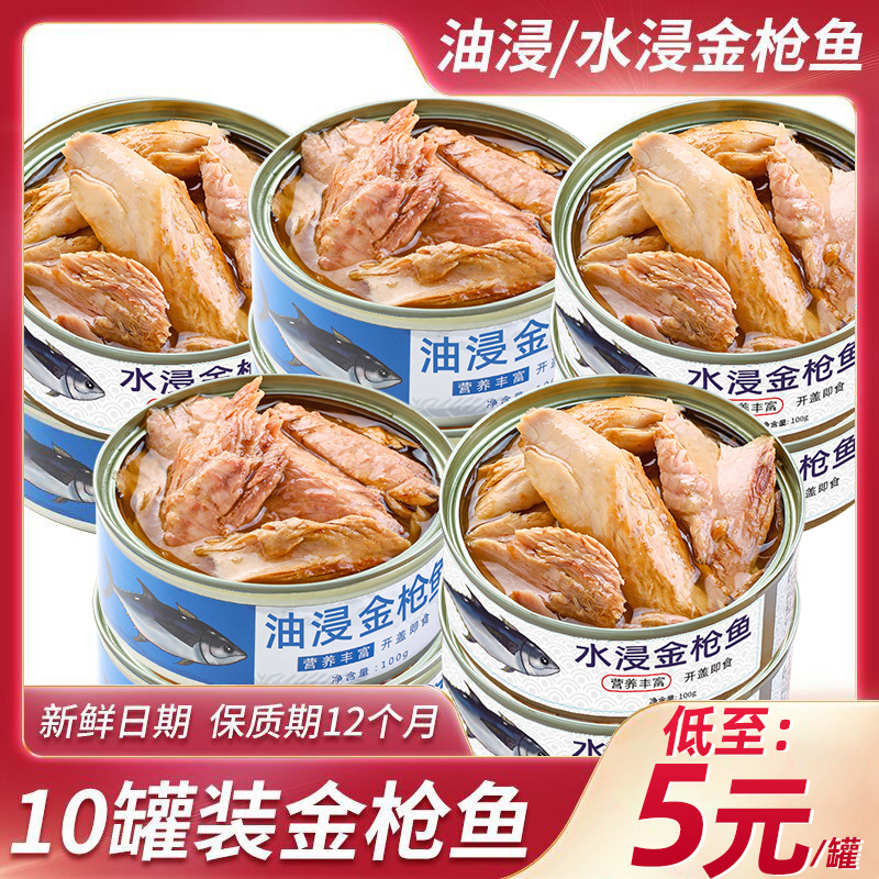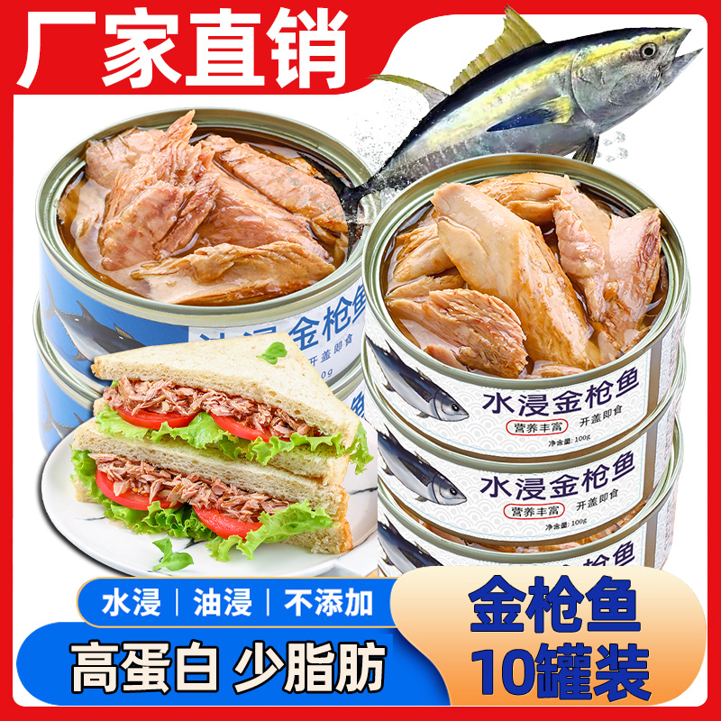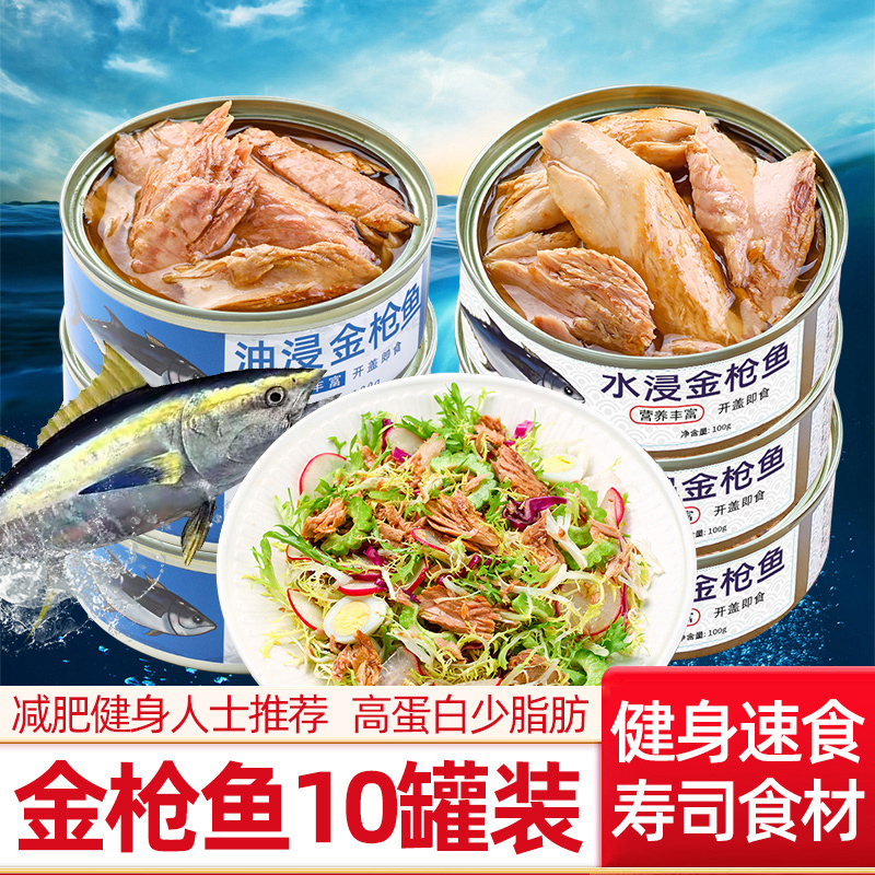 金枪鱼罐装即食油浸吞拿鱼轻食鱼肉熟食海鲜(水浸金枪鱼低脂)