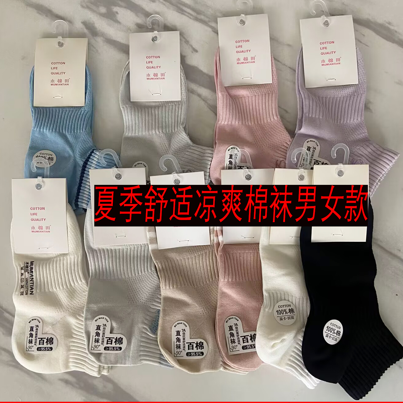 木棉田男女士夏季款纯棉短袜凉爽网眼百棉直角网船袜透气吸汗袜子