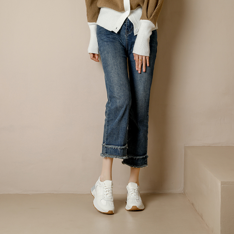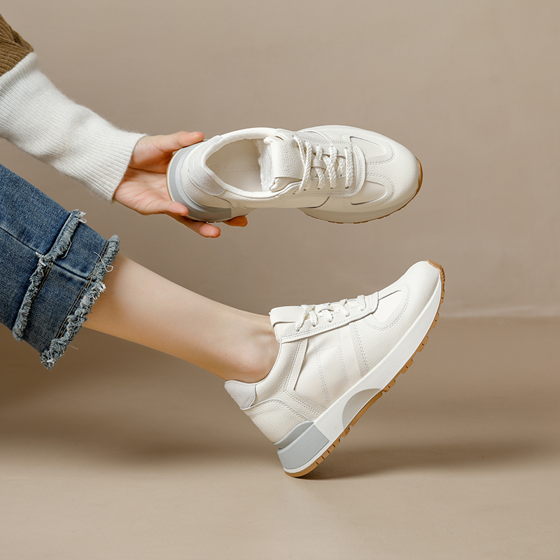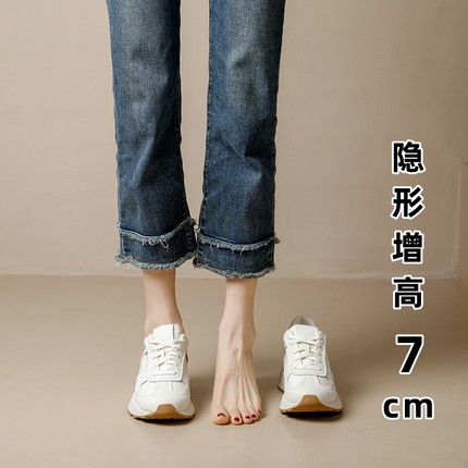 内增高小白鞋女2025新款小个子厚底休闲鞋真皮德训鞋小码33运动鞋