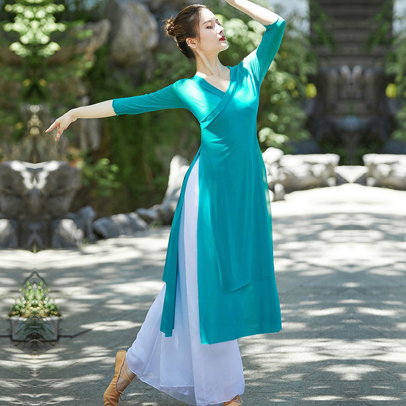 古典舞练功服女成人中古风网纱衣形体双层飘逸演出舞蹈服装套装厂