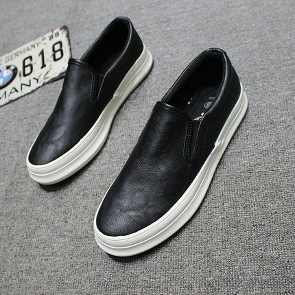 男士透气一脚蹬休闲皮鞋男懒人鞋乐福鞋韩版厚底板鞋百搭潮流男鞋