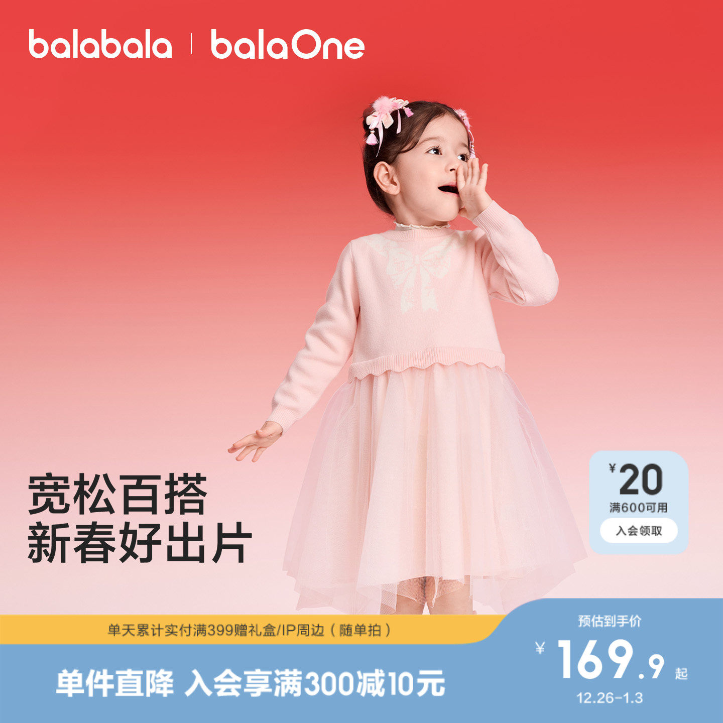 巴拉巴拉童装女童连衣裙2025新秋冬装网纱儿童裙子红色拜年服洋气