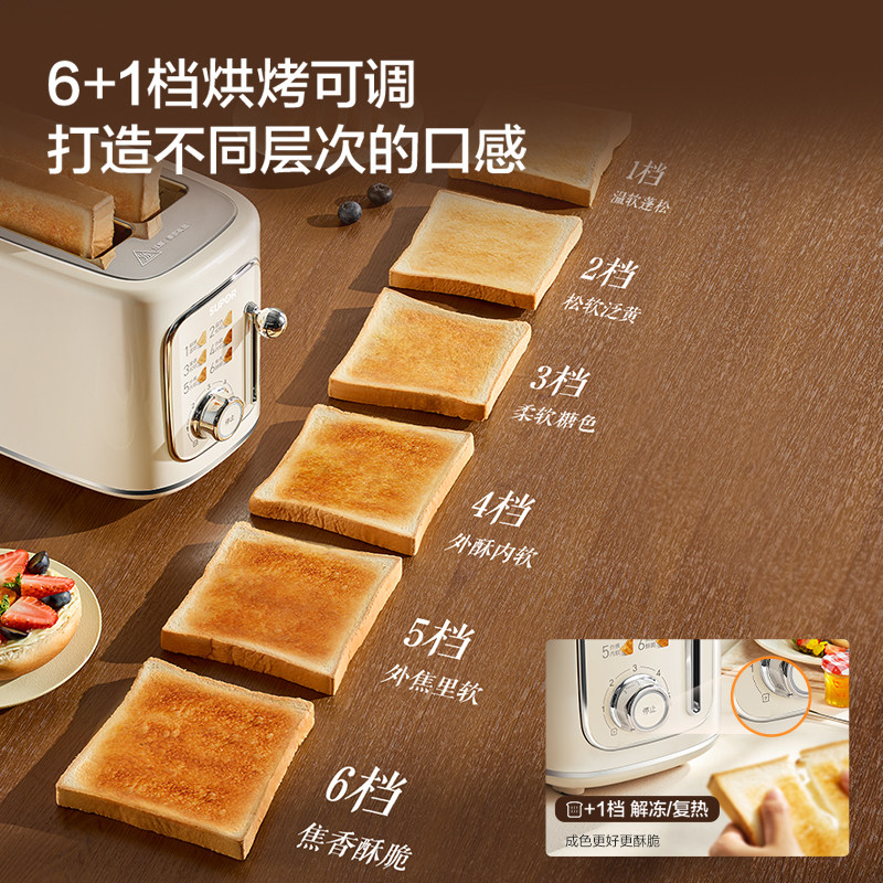 苏泊尔多士炉家用早餐吐司大功率速烤加宽烤槽多功能复古面包机