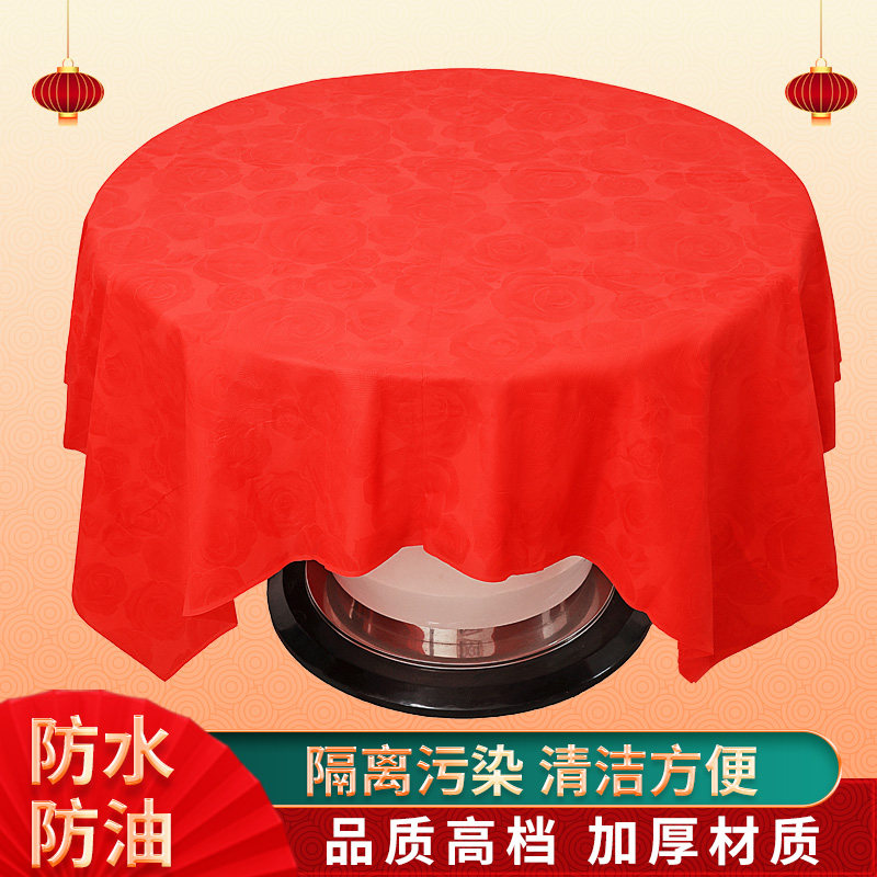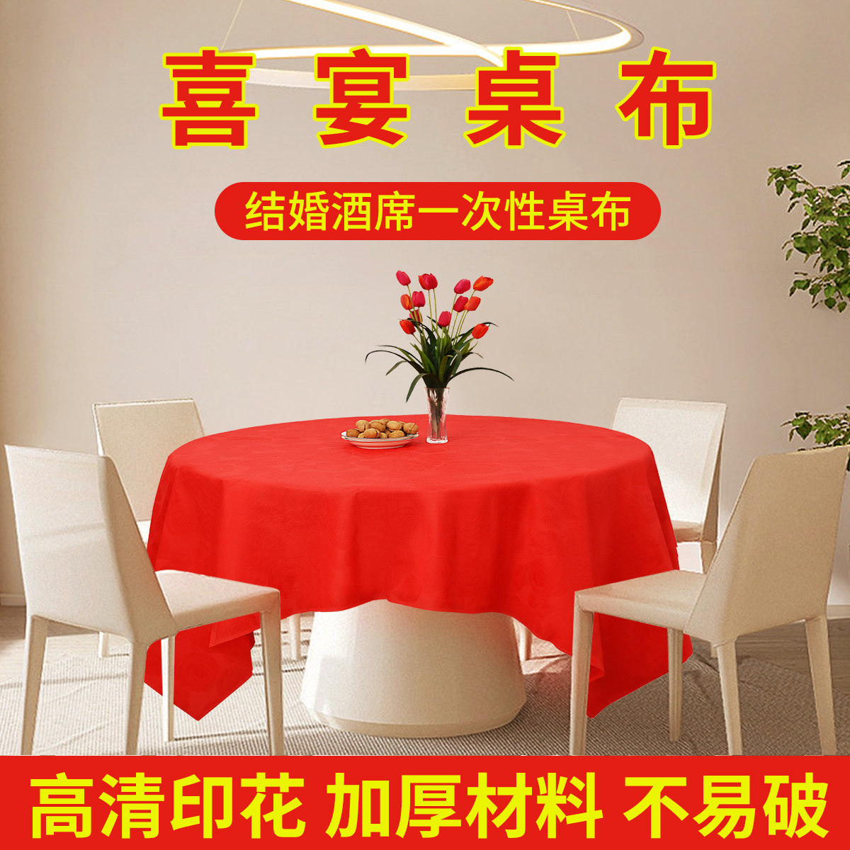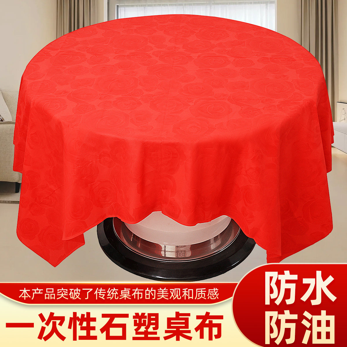 婚宴喜庆一次性大红印花3D玫瑰石头桌布加厚台布免洗防水防油包邮