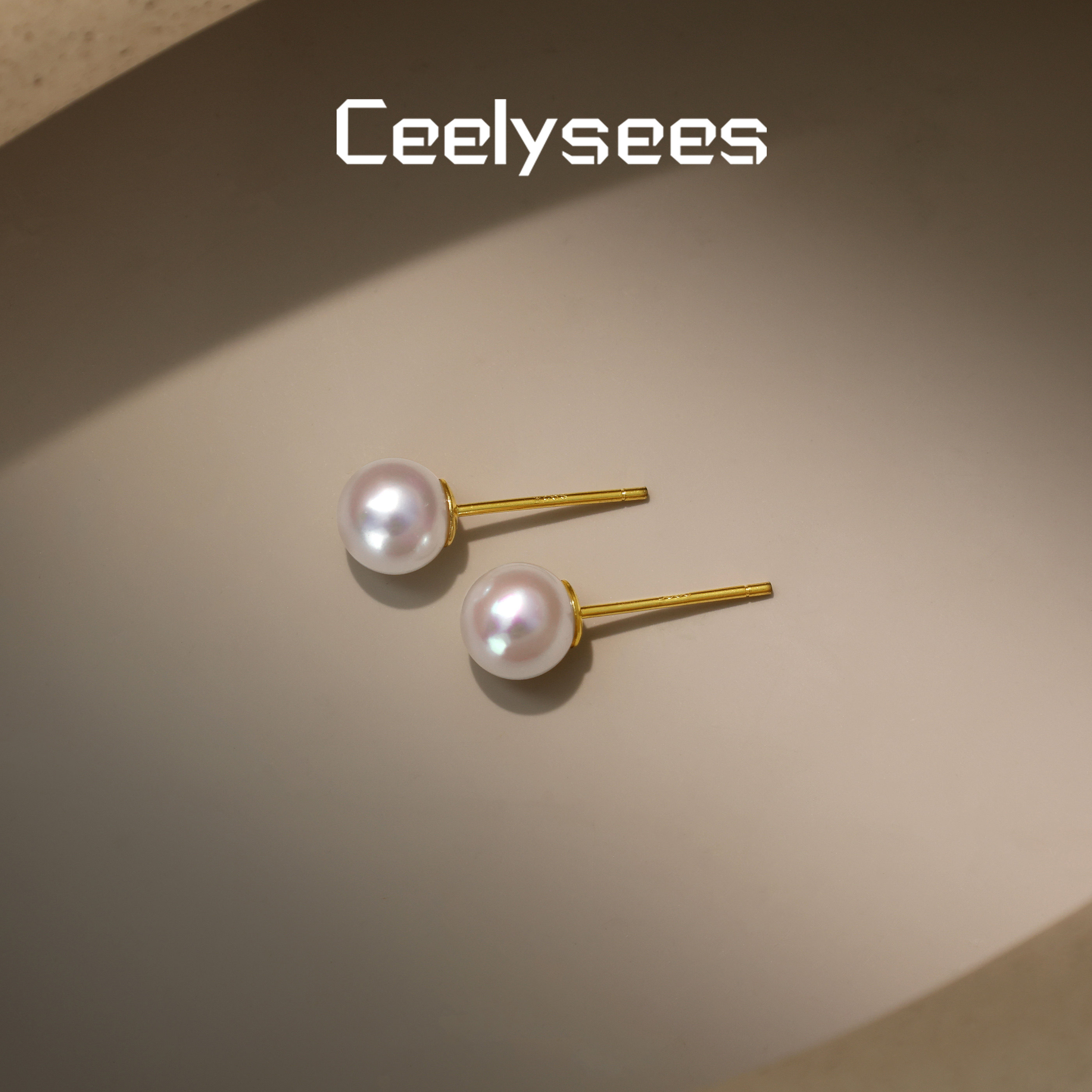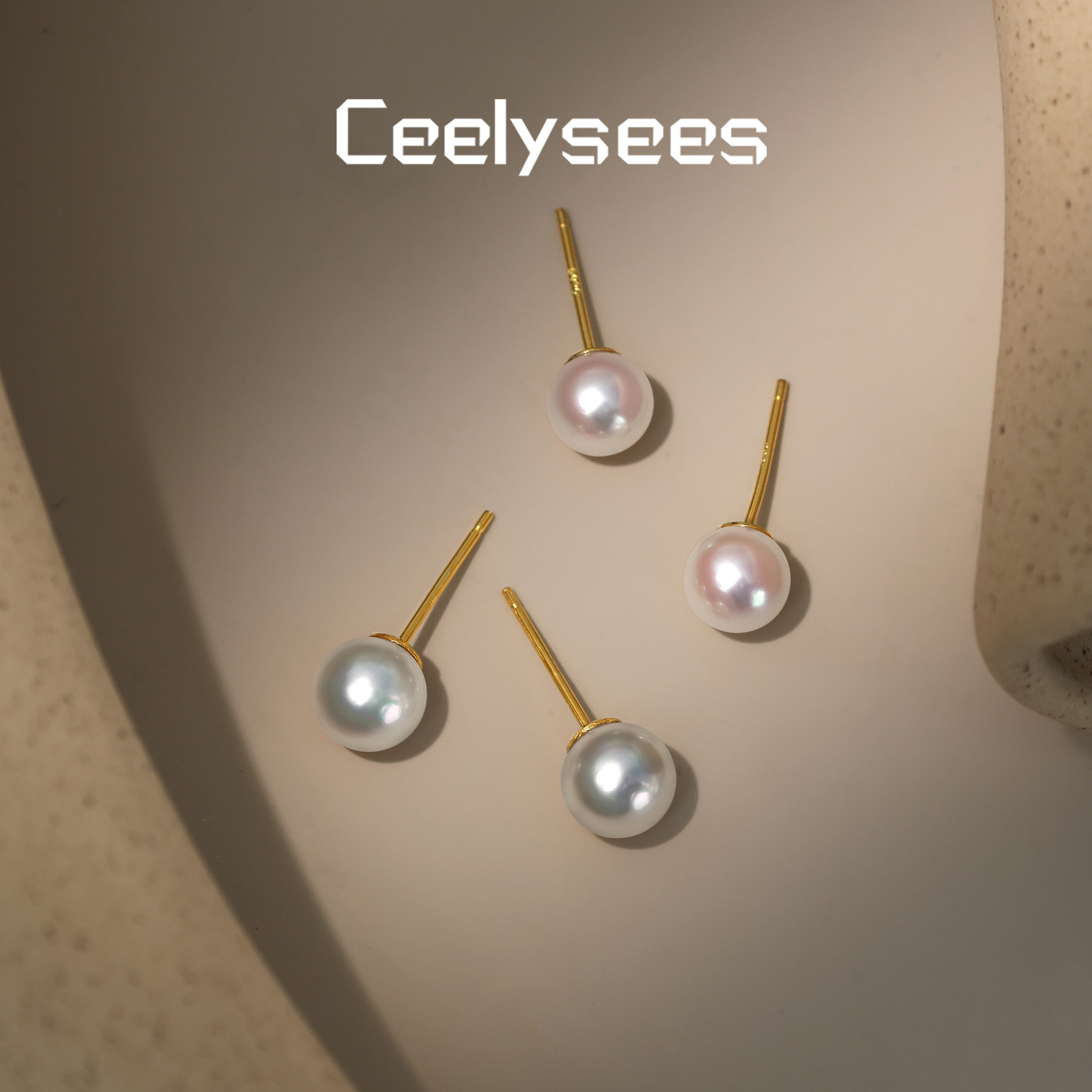 Akoya海水珍珠925银镀金耳钉极光正圆镜面极强激光粉天女珍珠强光
