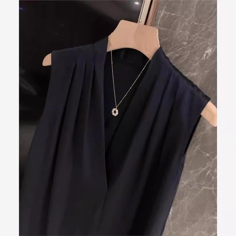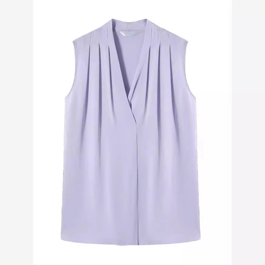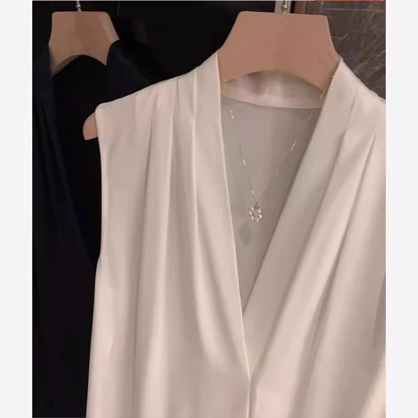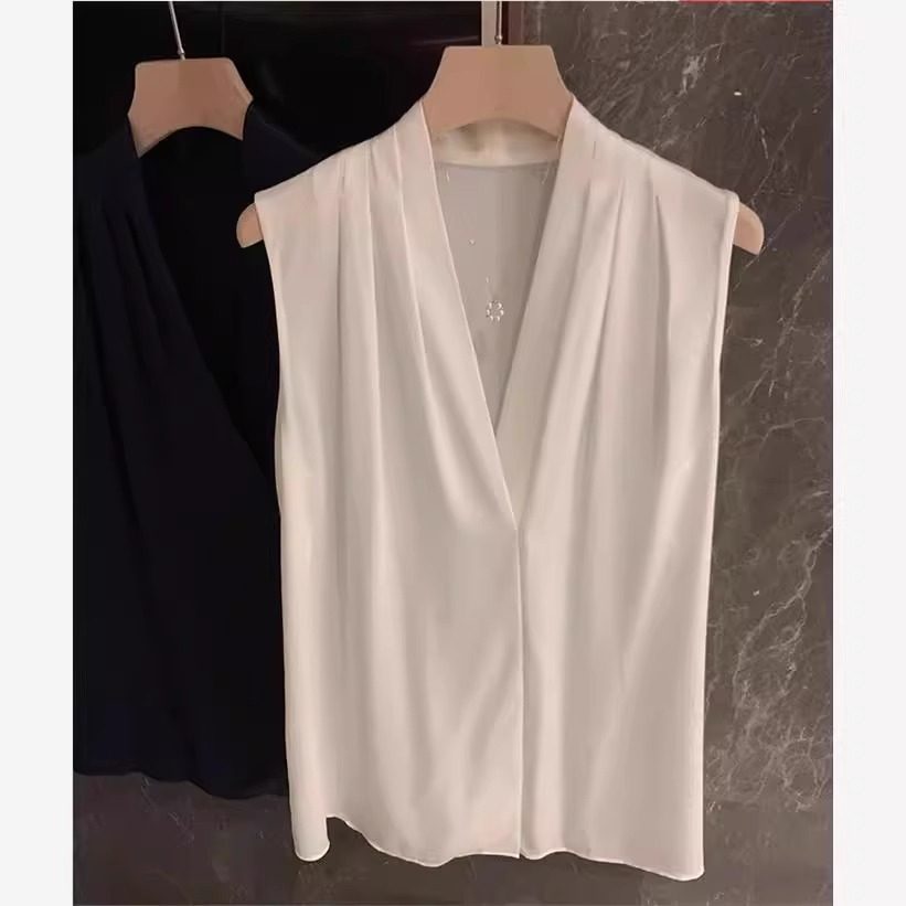 OL风西装内搭~法式优雅交叉式V领缎面醋酸无袖衬衫真丝吊带背心女
