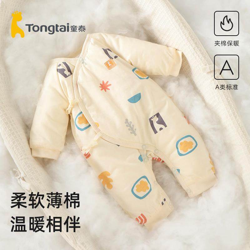 童泰新生婴儿衣服秋冬季纯棉初生宝宝连体衣外出棉服夹棉加厚哈衣
