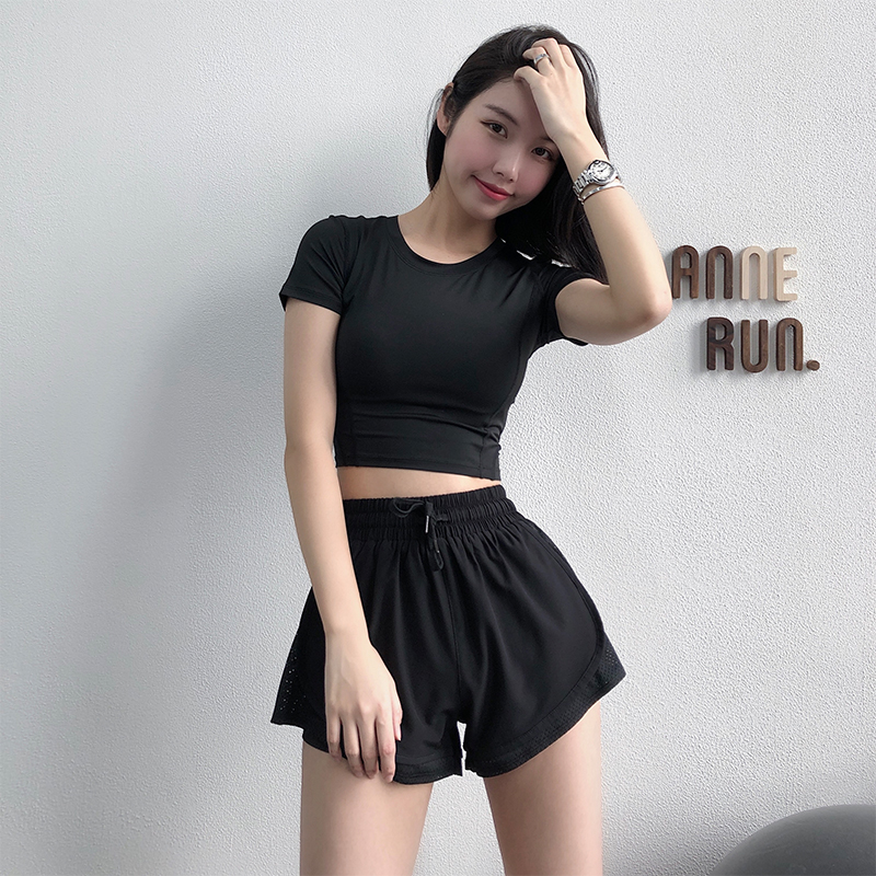 annerun运动短裤女防走光宽松健身房跑步短裤外穿假两件瑜伽热裤