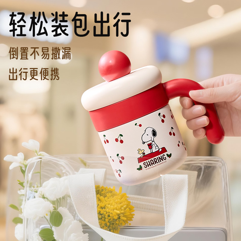 史努比女生马克杯保温吸管水杯316l不锈钢办公喝咖啡牛奶杯子可爱