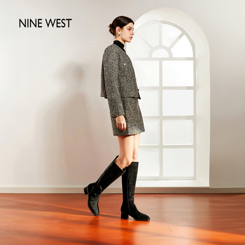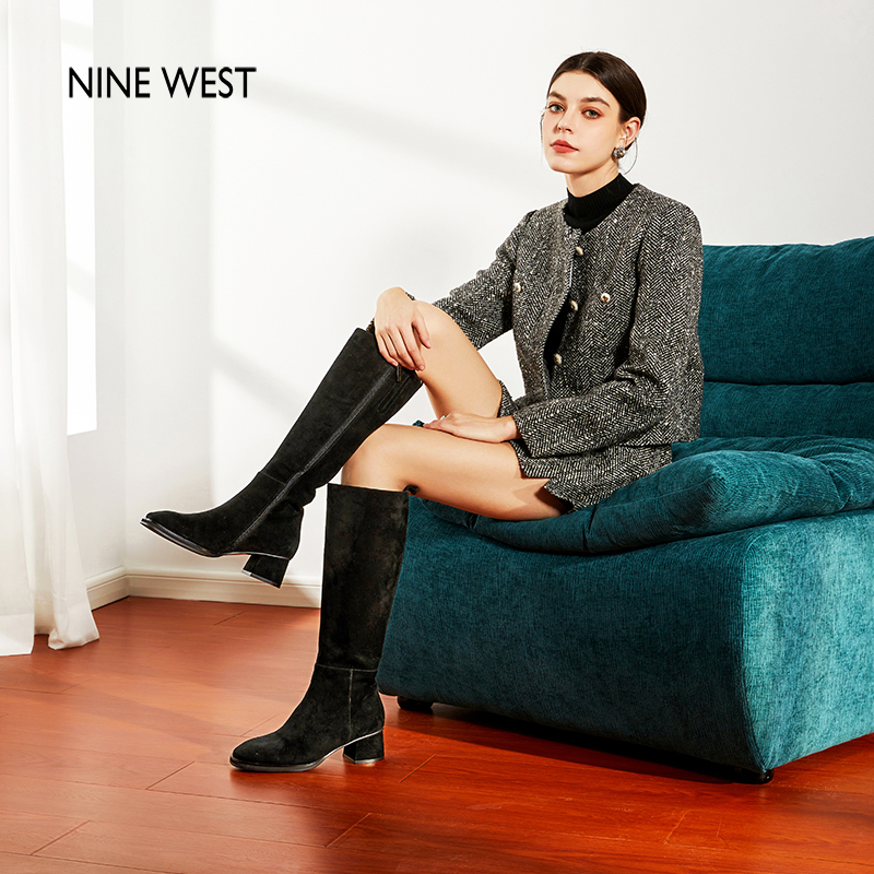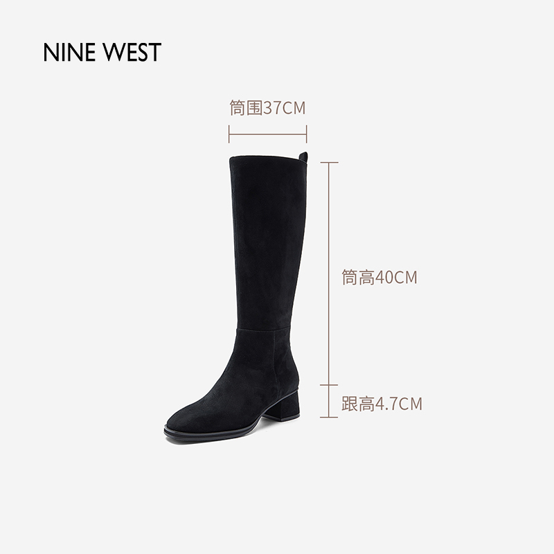 Nine West/玖熙瘦瘦靴女秋冬新款复古反绒高跟长靴显瘦时装靴