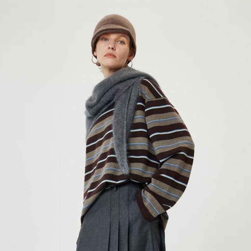 复古条纹莱赛尔羊毛打底衫