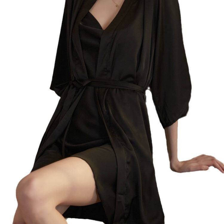 维多利亚性感睡衣女夏季新款吊带睡裙桑蚕丝两件套睡袍家居服