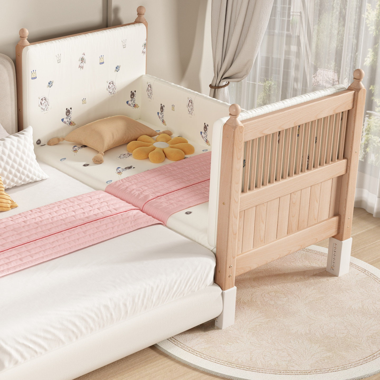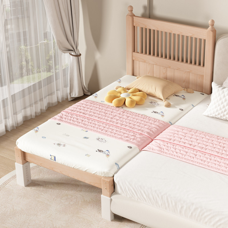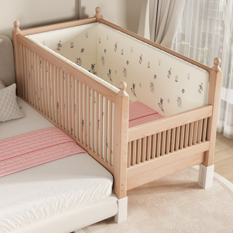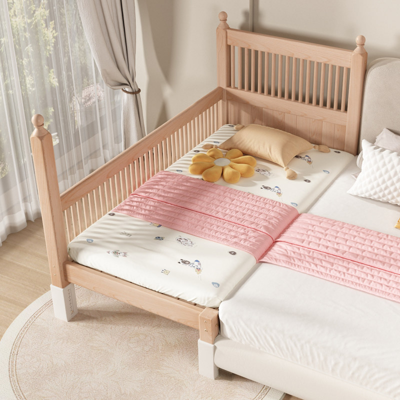实木儿童拼接床婴儿可定制小床升降护栏榉木大床加宽大人宝宝边床