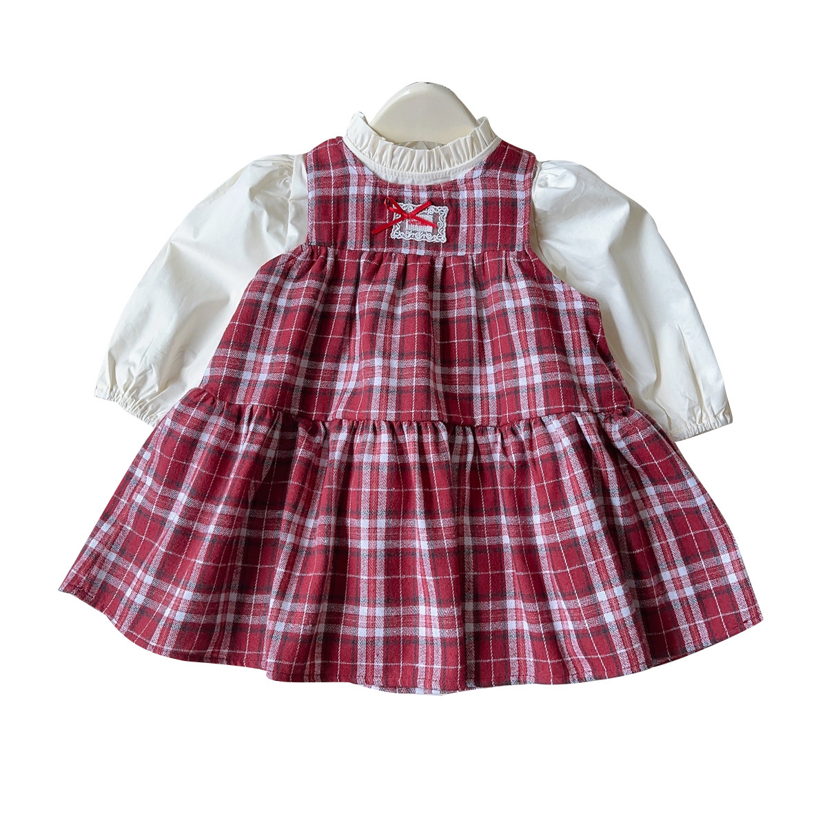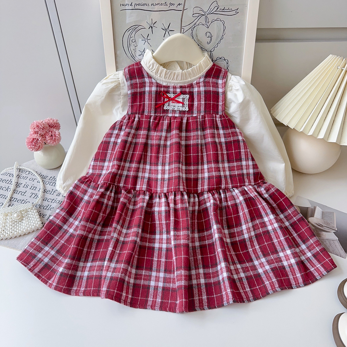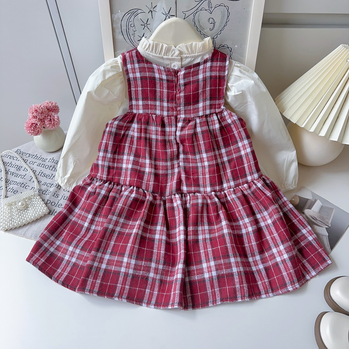 女童套装春秋新款2025长袖衬衫格子背心裙小女孩公主两件套跨境