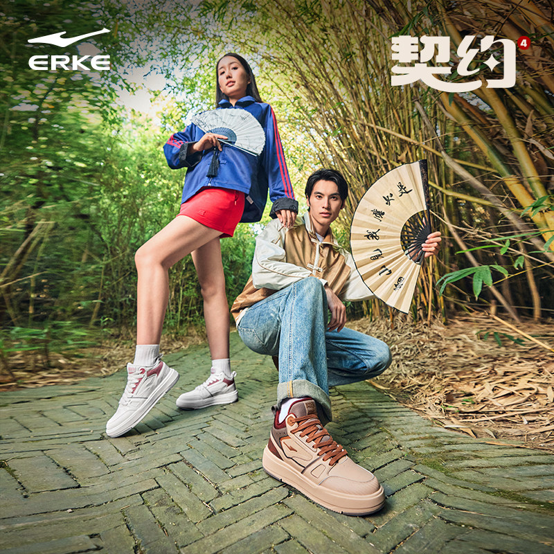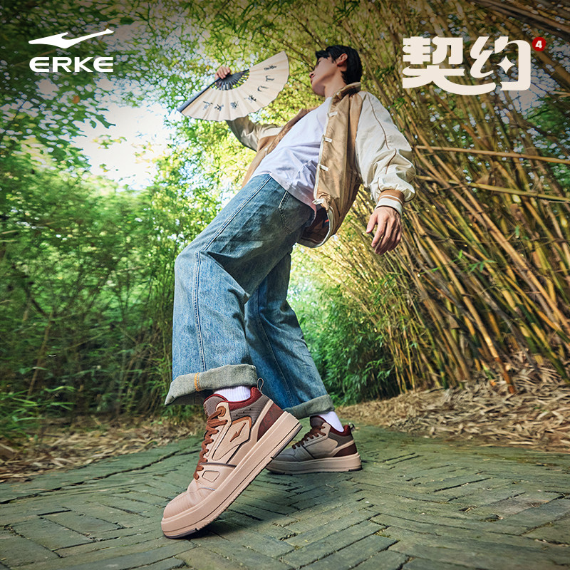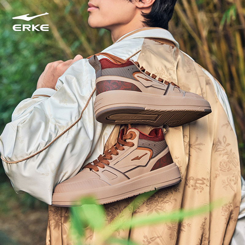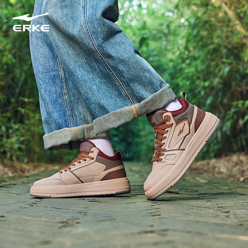 契约4 鸿星尔克板鞋男鞋秋季皮面厚底休闲鞋子学生百搭高帮运动鞋