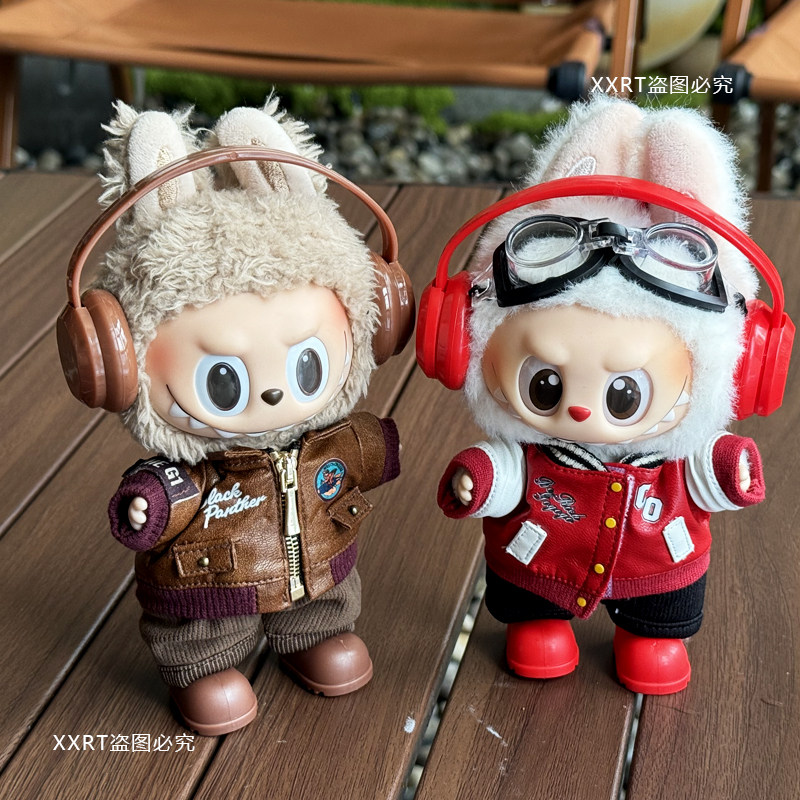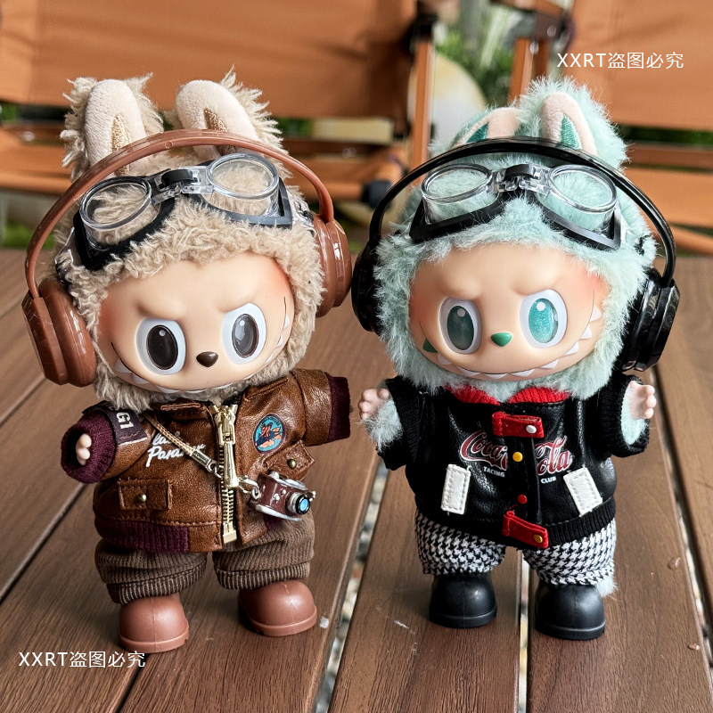 拉布布一二三代公仔站姿潮流夹克外套复古钥匙扣盲盒换装衣服