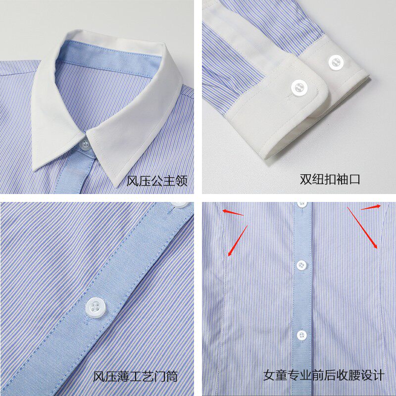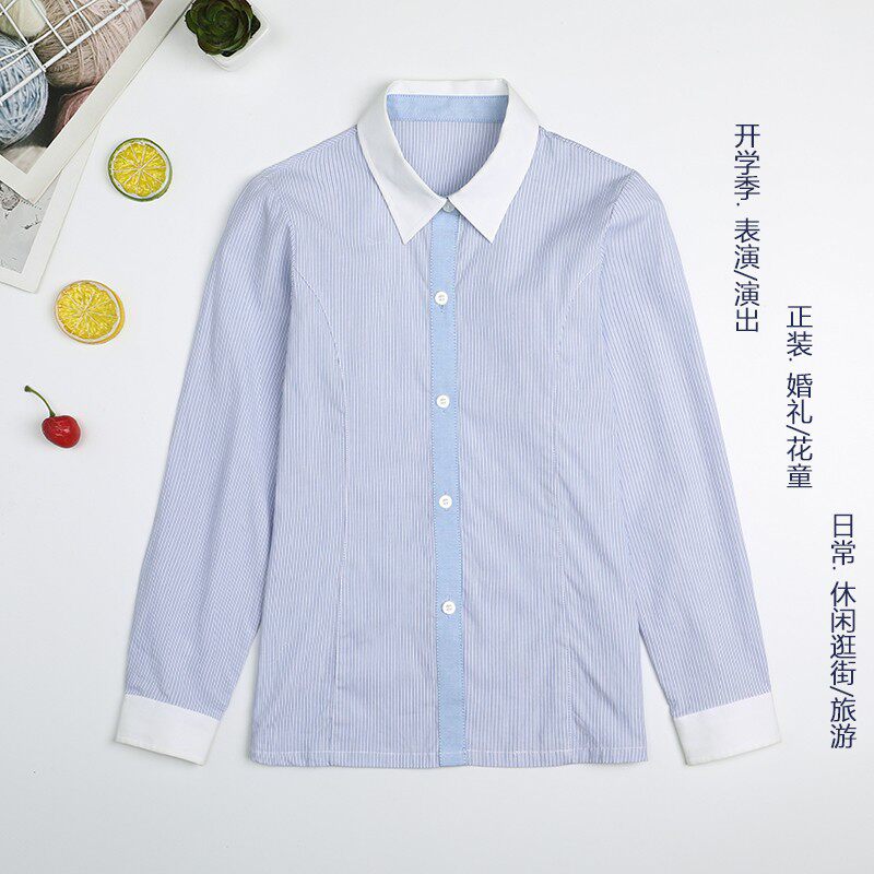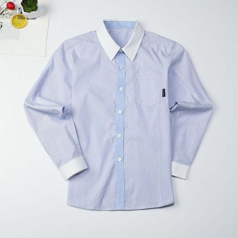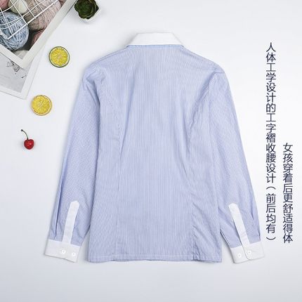 小学生校服衬衫蓝白条纹长袖纯棉春秋款英伦风中大童儿童女童衬衣