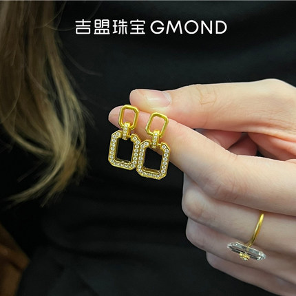 吉盟珠宝999足金点钻耳钉送女友黄金耳饰简约几何形耳坠时尚ins风