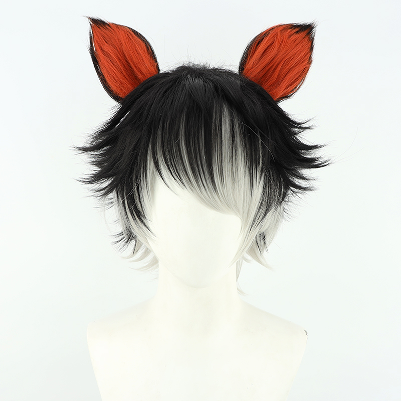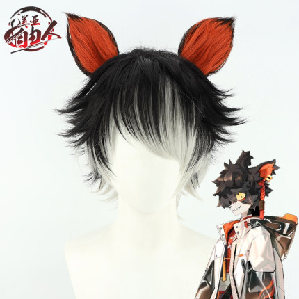 【自由人】明日方舟阿cos假发新干员Aak 黑色渐变银灰带耳朵