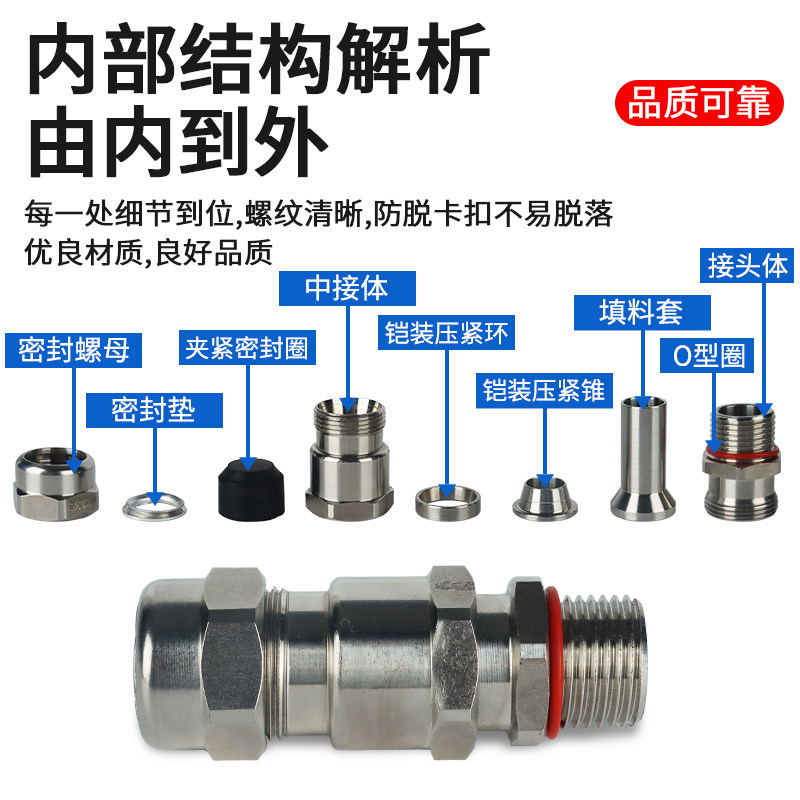 防爆格兰头304不锈钢/碳钢BDM防爆铠装电缆密封接头接管式填料函