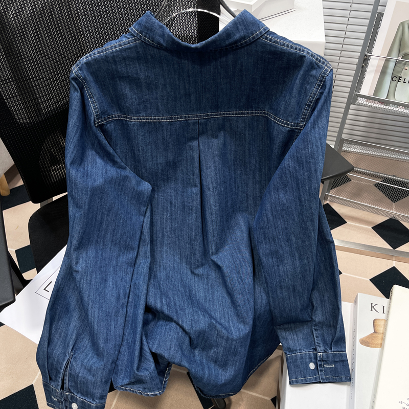 大码复古港味牛仔衬衣