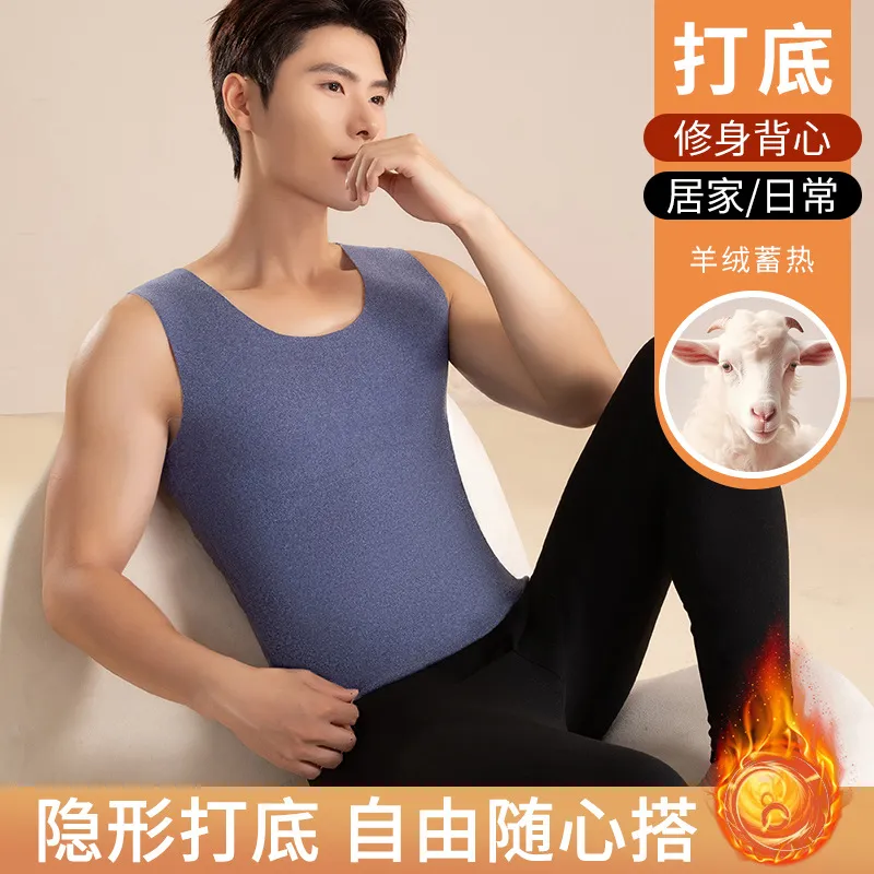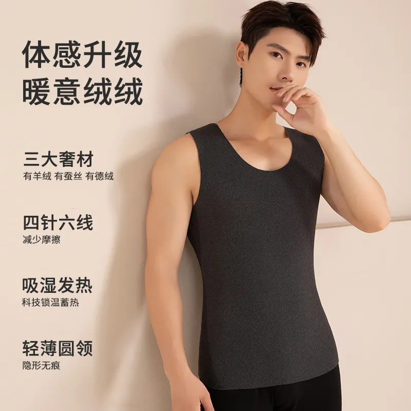 羊毛蚕丝无痕保暖背心加绒打底衫德绒双面磨毛男士马甲无袖上衣