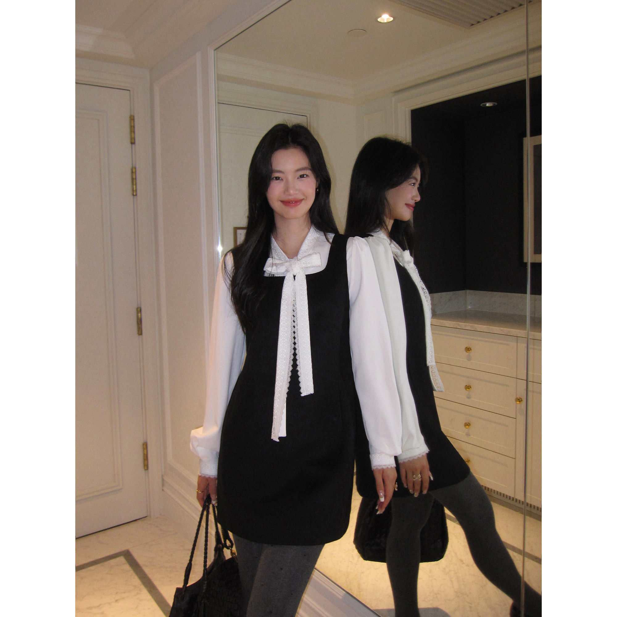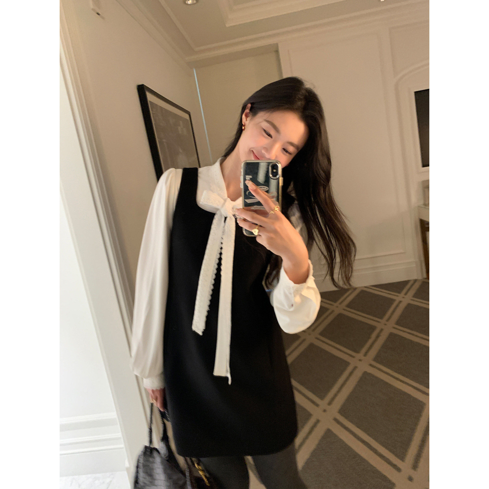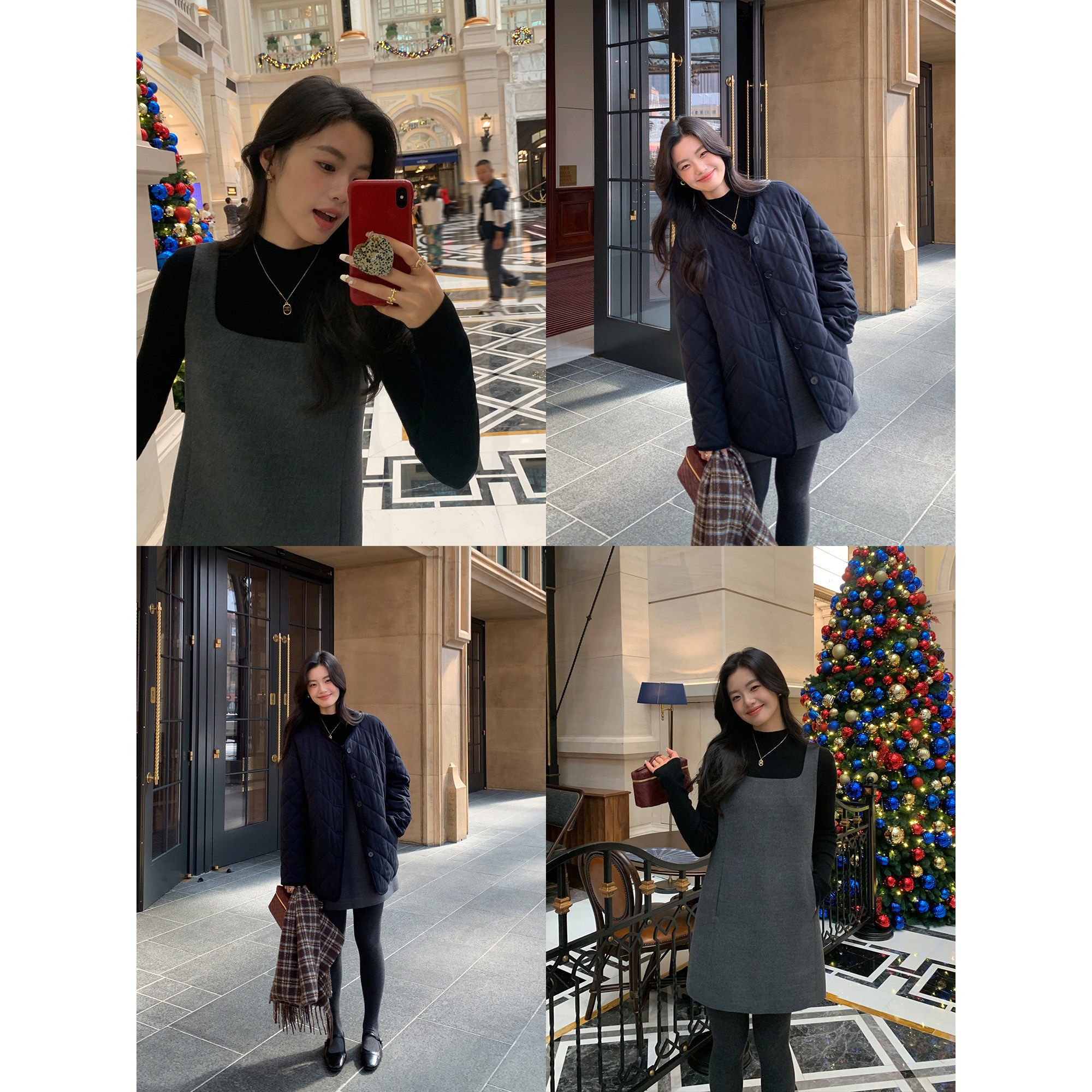 爵莱菲大码高级感羊毛背心裙无袖秋冬连衣裙冬季日常韩风收腰背带