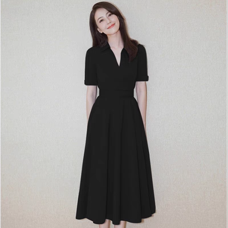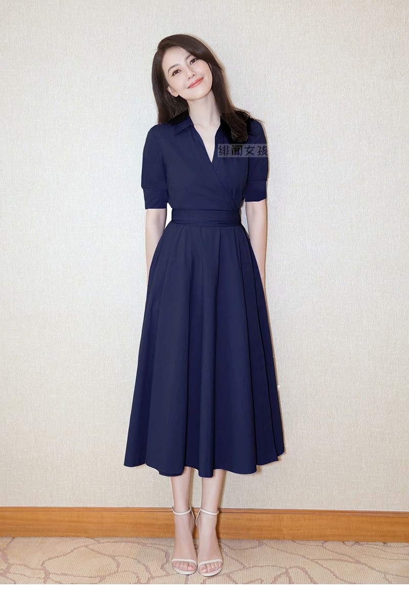高圆圆同款连衣裙2025新款女秋 时尚淑女职业大摆裙A字裙收腰遮肚