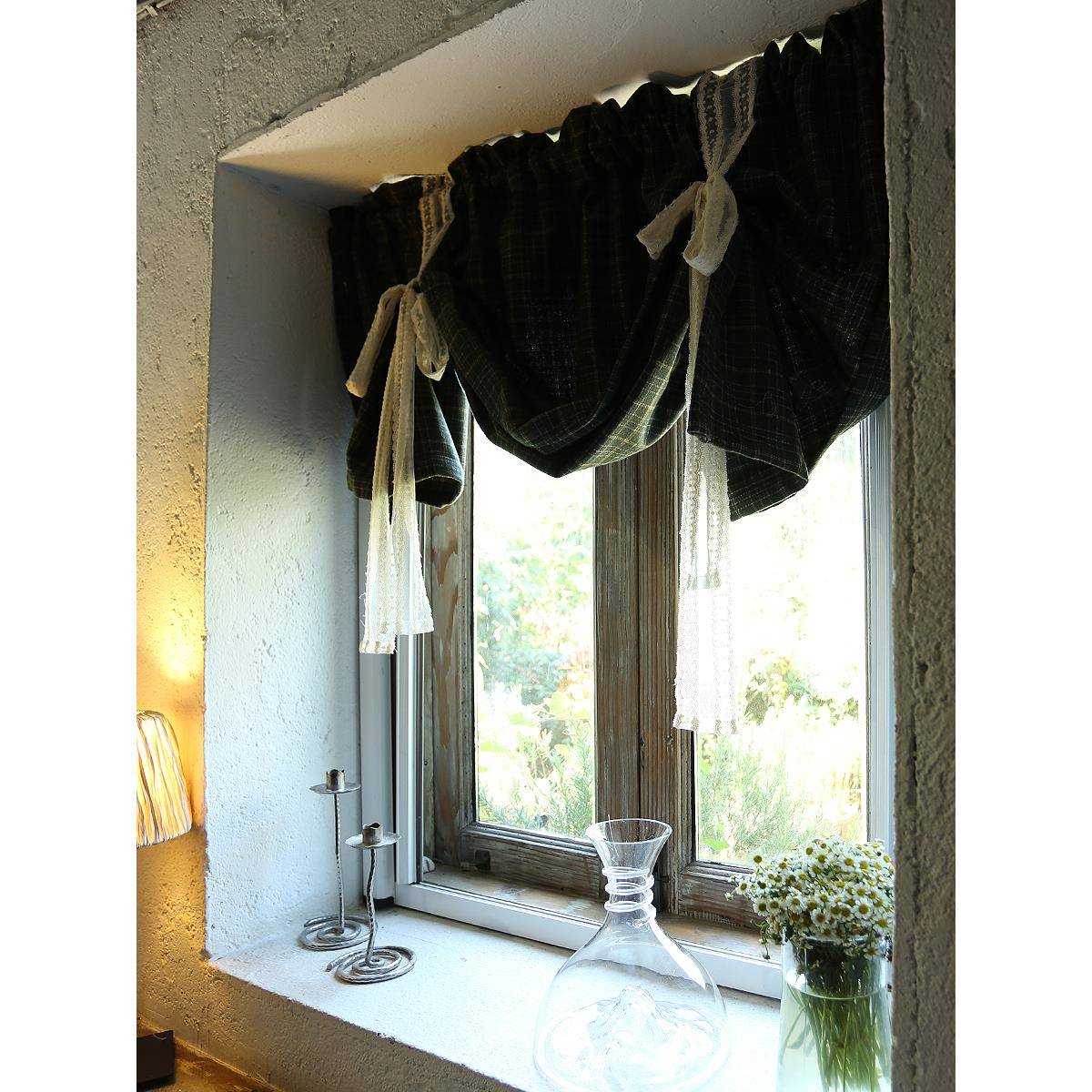 鸢尾美式复古墨绿格子提拉帘门帘厨房帘窗帘短帘客厅卧室遮光定制