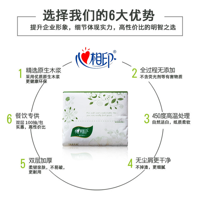 心相印抽纸小方抽餐巾纸餐厅酒店软包面巾纸家用压花擦手纸家用