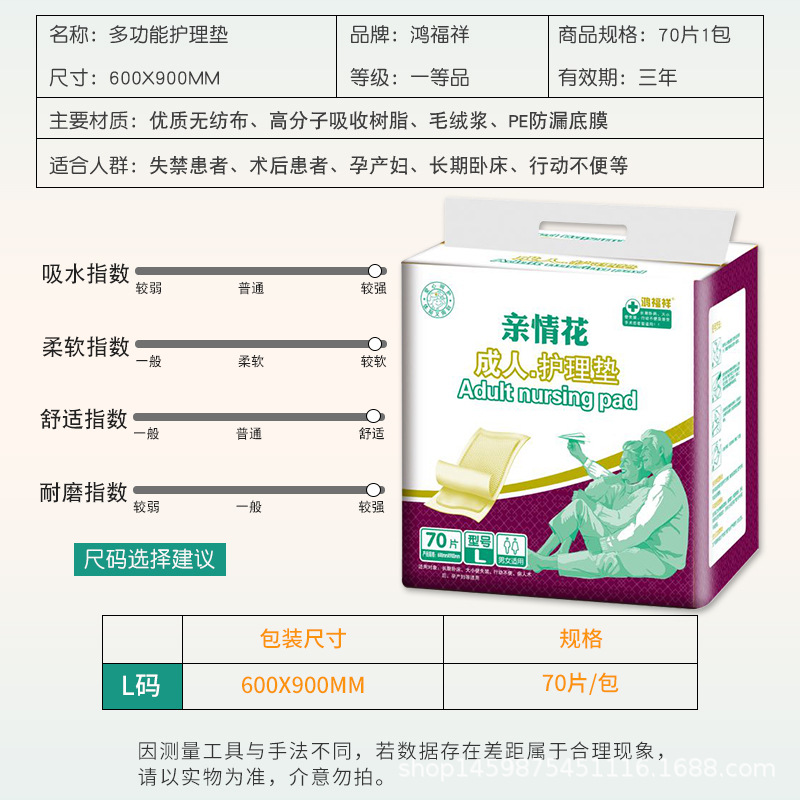 鸿福祥60x90成人护理垫棉婴儿老人70片装产后产褥期垫子产妇护垫