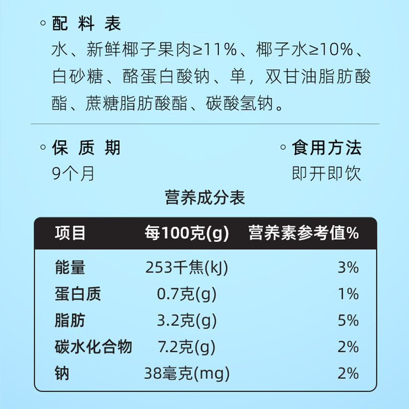 椰谷鲜椰汁无防腐1kg*8瓶饮料