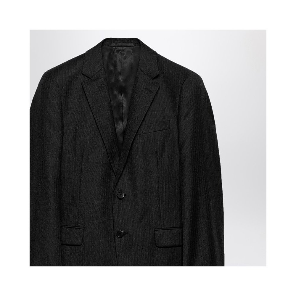 1h可退 香港直邮潮奢 Prada 普拉达 男士 单排扣煤炭黑灰色羊毛羊