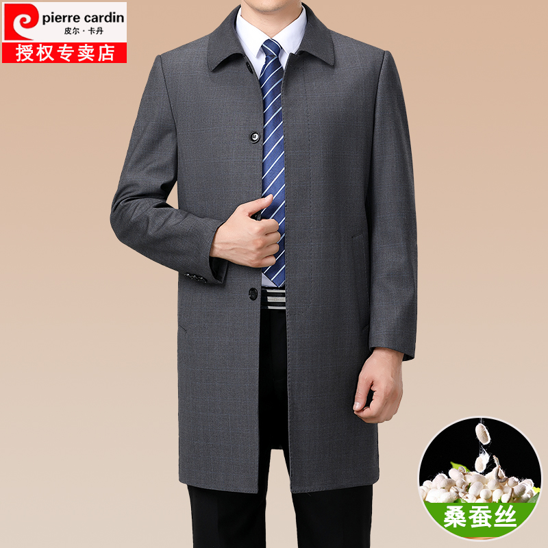 皮尔卡丹外套男中长款2025新款秋冬季中年爸爸装时尚休闲高档风衣