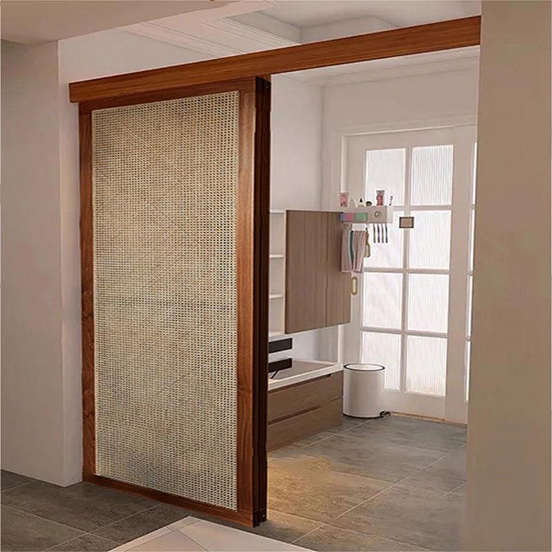 藤编门日式拉门隐形门隔断移门厨房卧室门实木折叠门衣柜门柜门