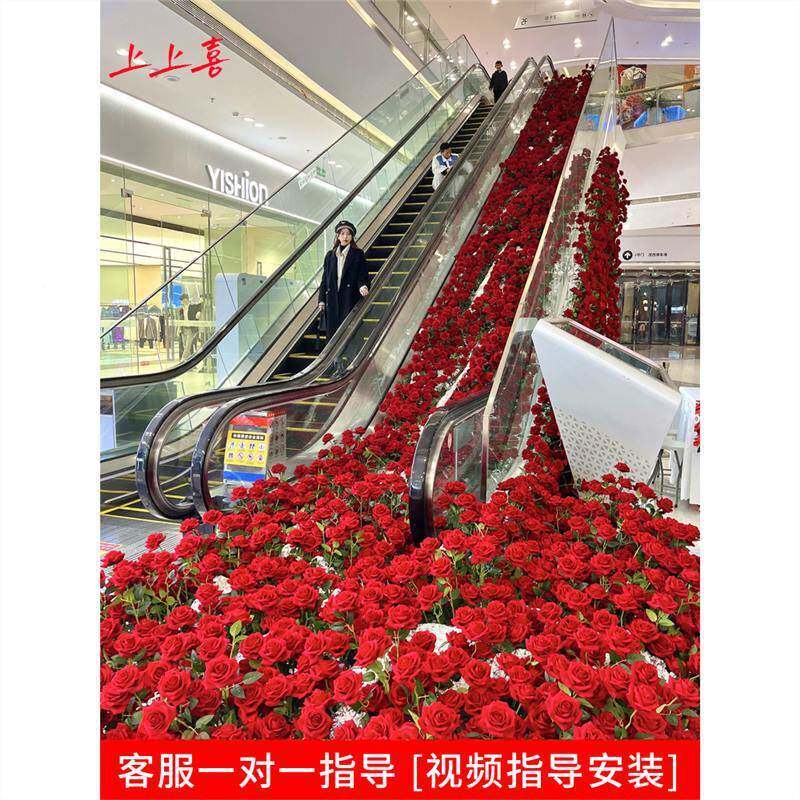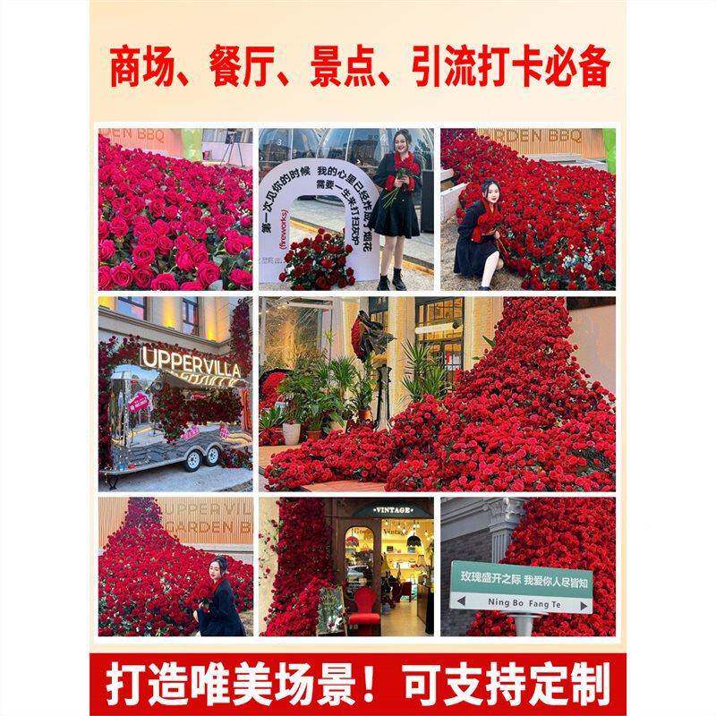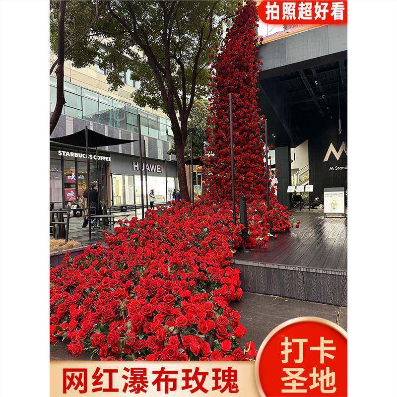 冰玫瑰花真瀑布川玫玫瑰瀑布瑰花假花场景布置网材料红打卡花墙瀑