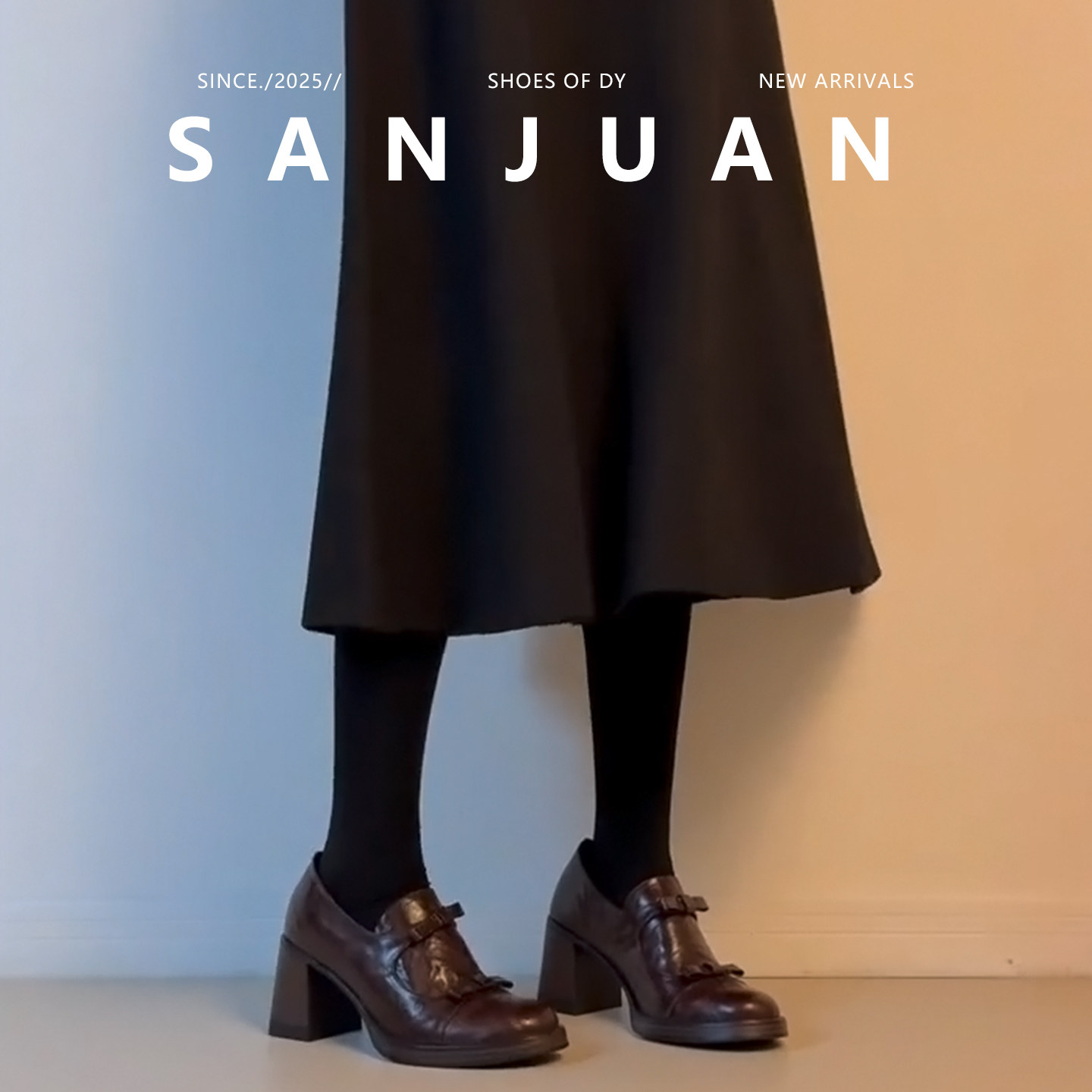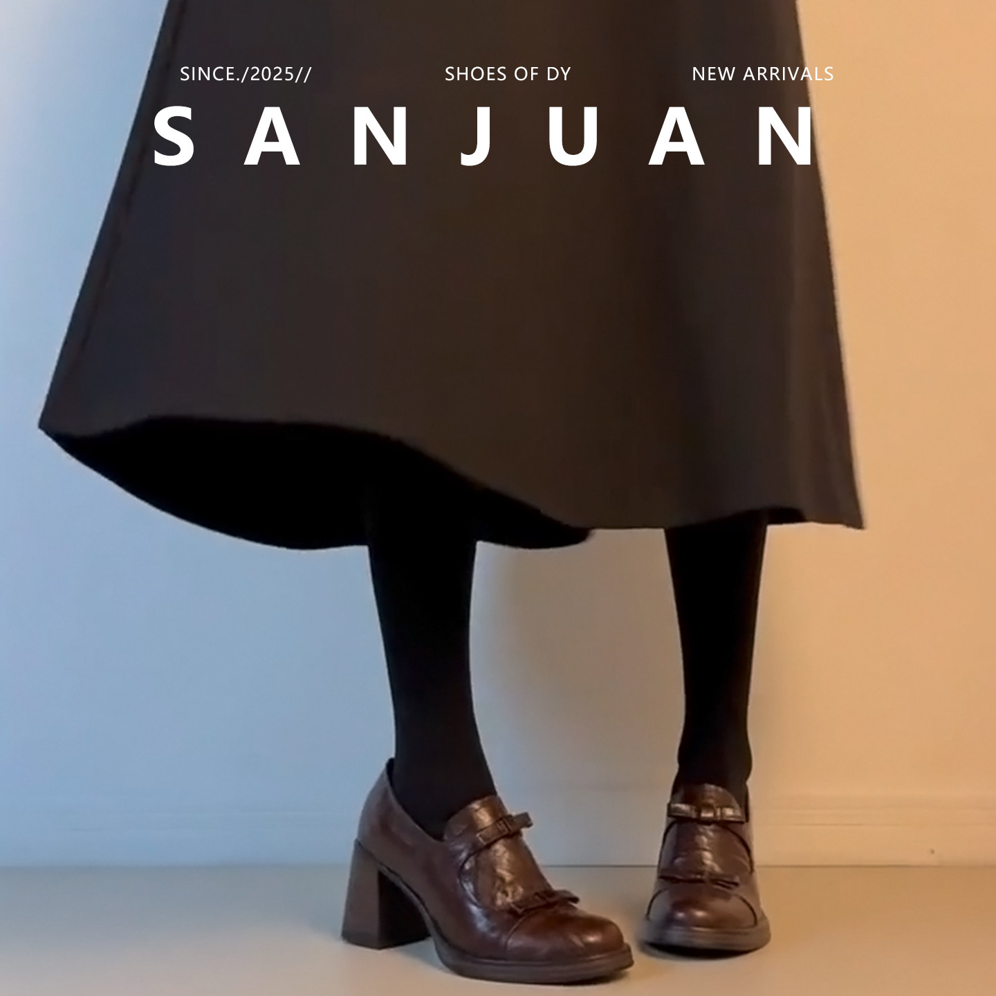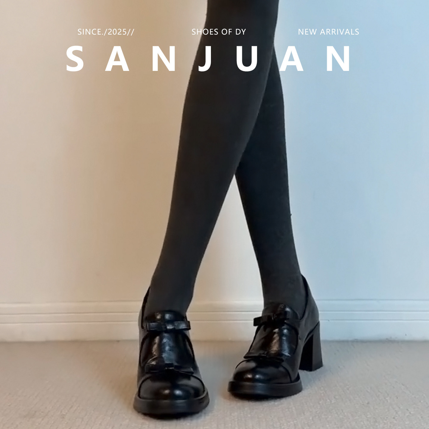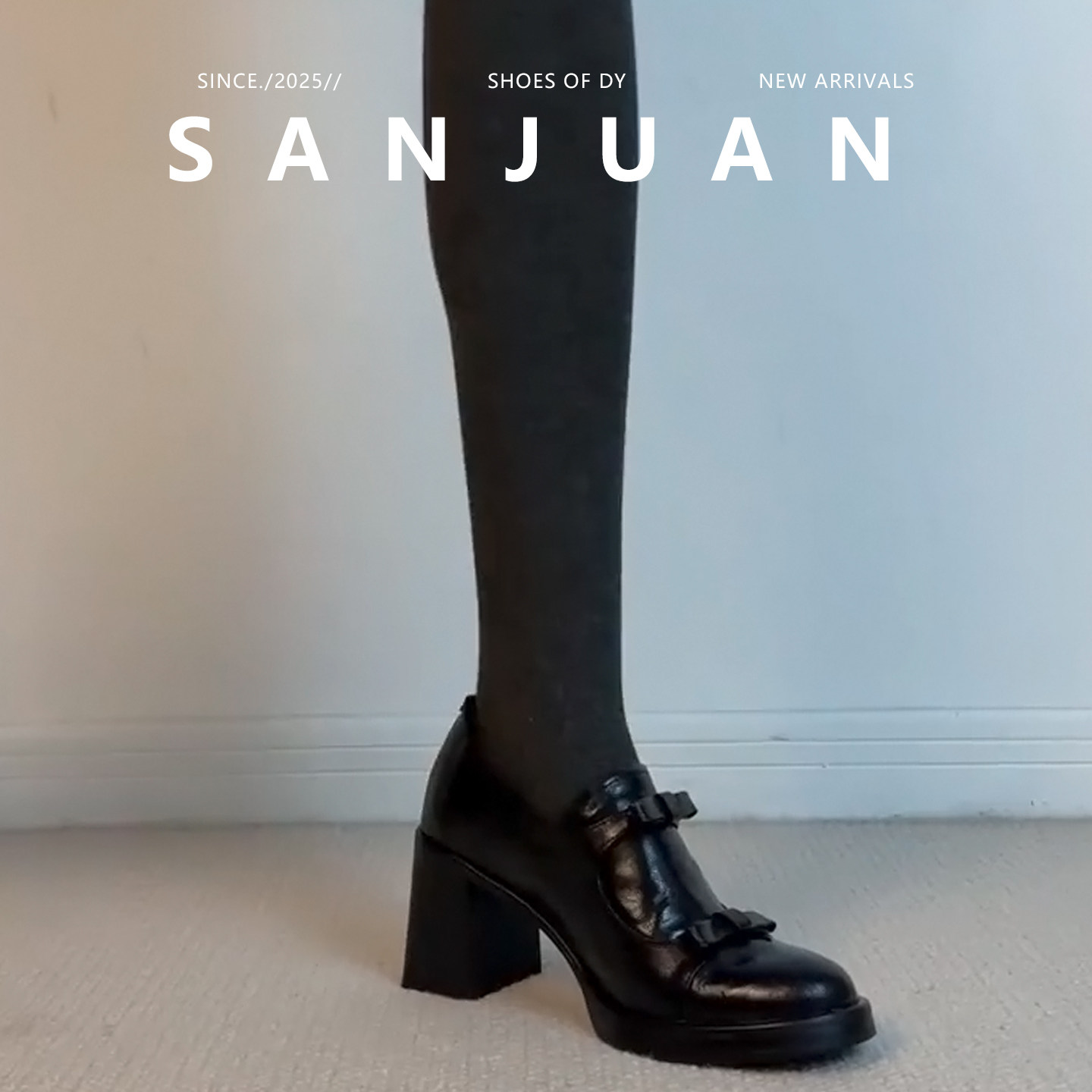 羊皮版sanjuan三卷厚底圆头小皮鞋女蝴蝶结高跟鞋学院风粗跟单鞋
