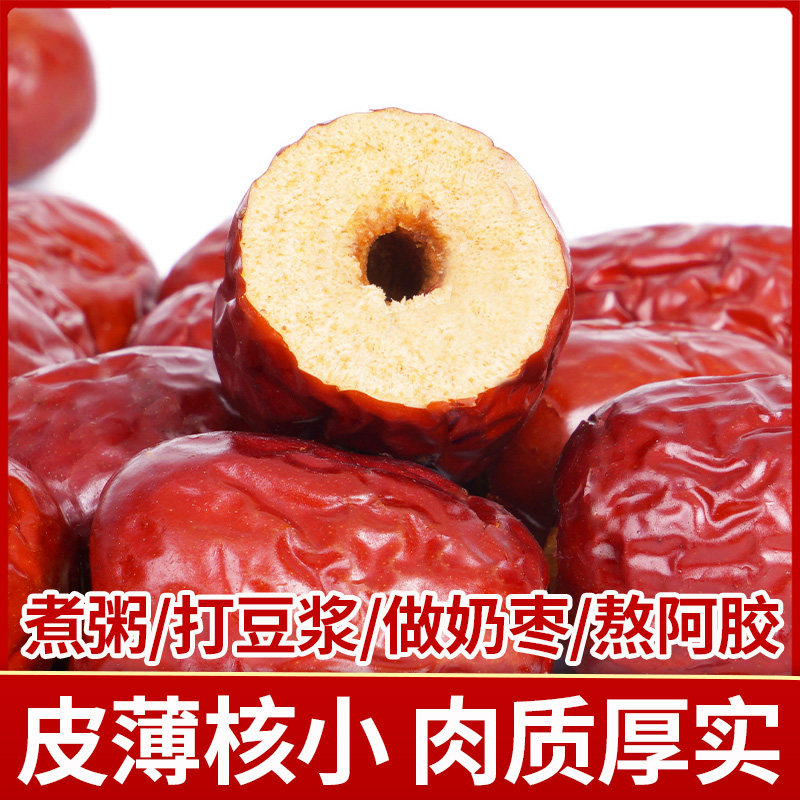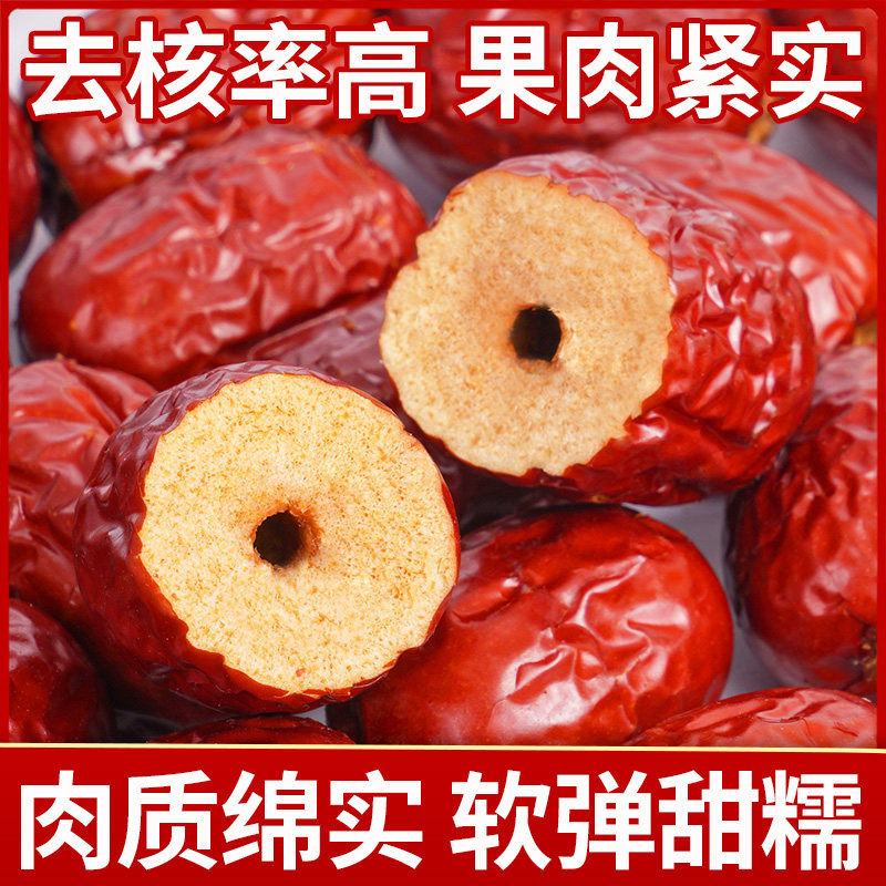 无核红枣特级5斤新疆去核若羌灰枣奶枣专用空心红枣免洗打豆浆